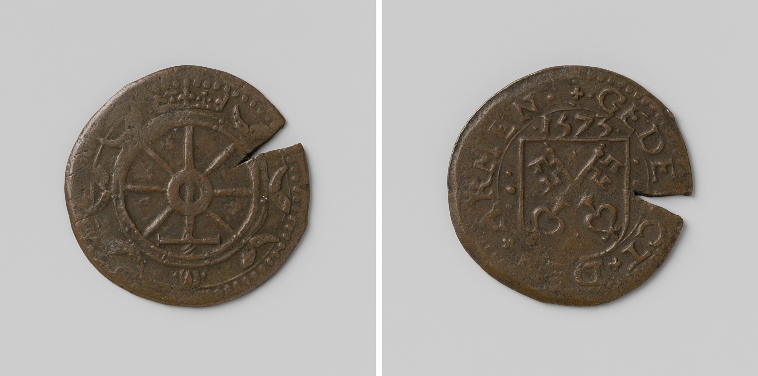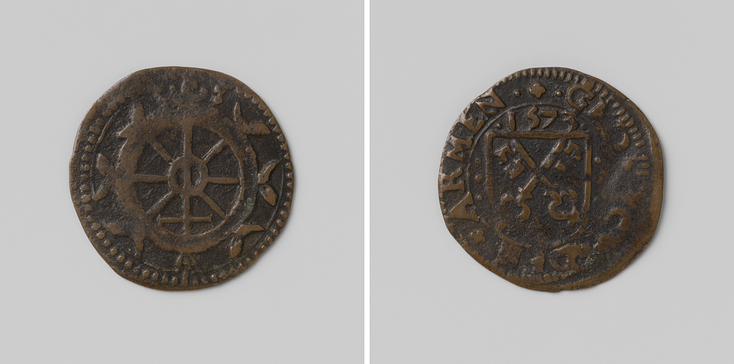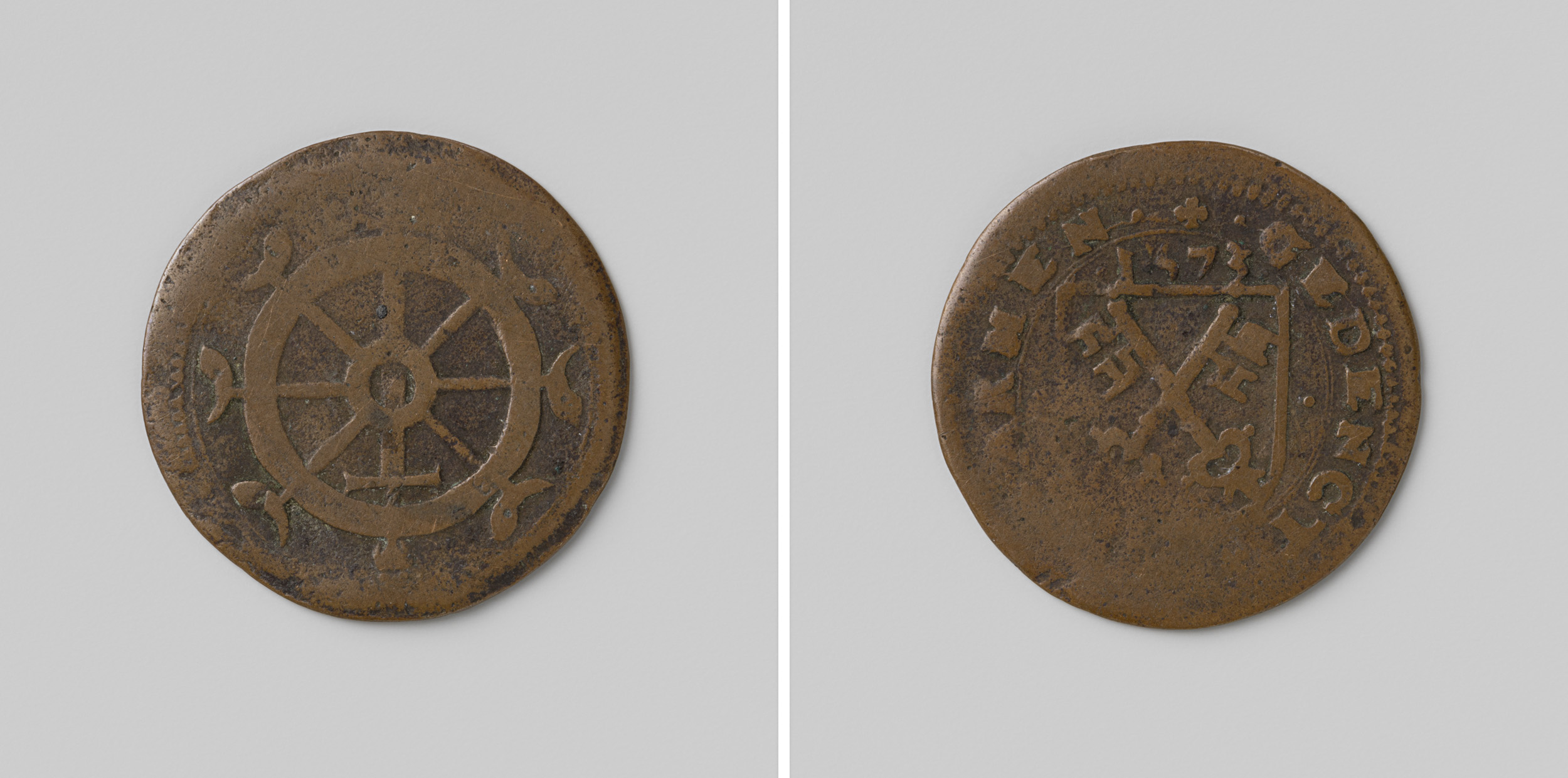 Armenpenning van de stad Leiden, die bij uitdeling r...