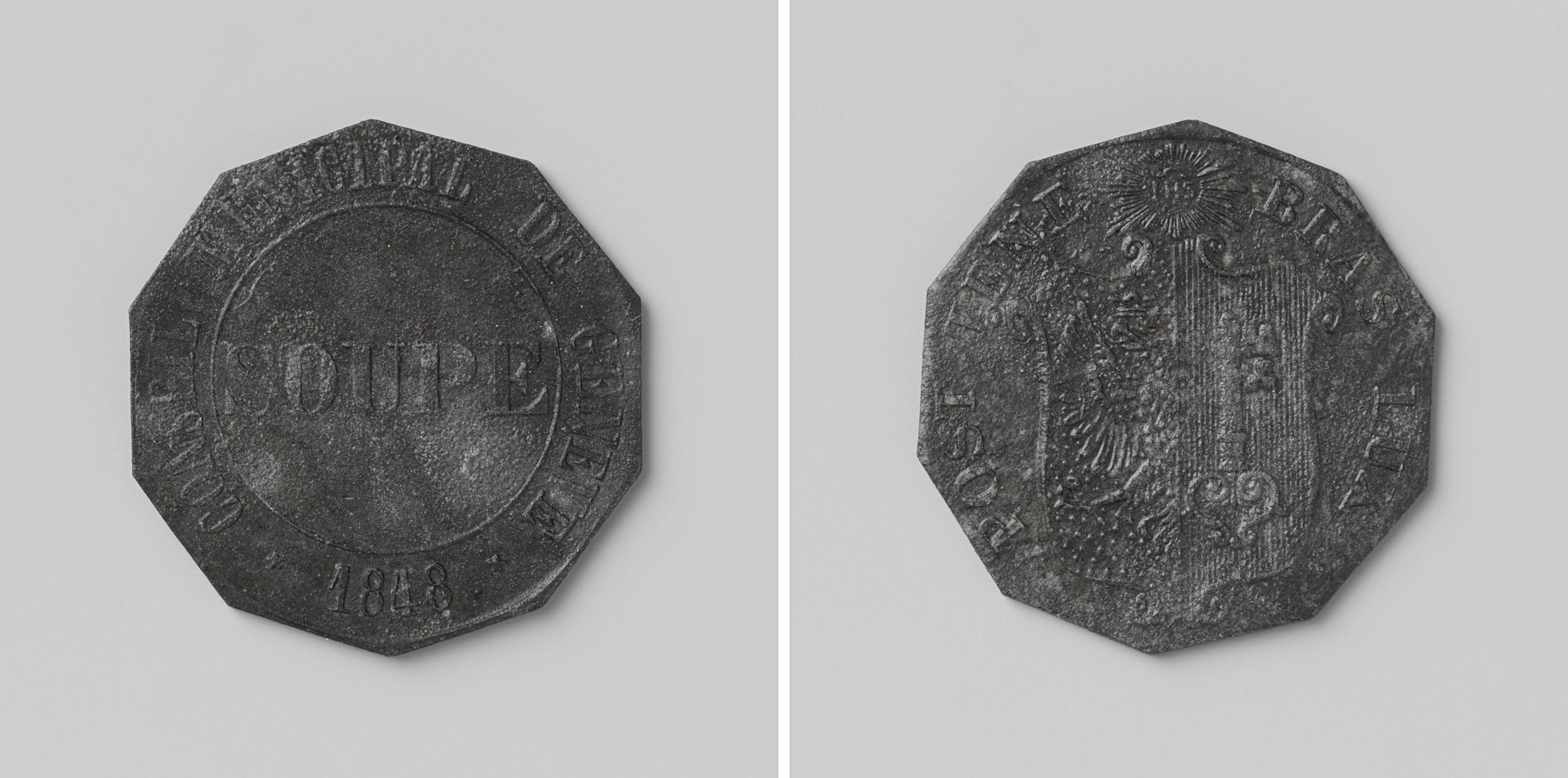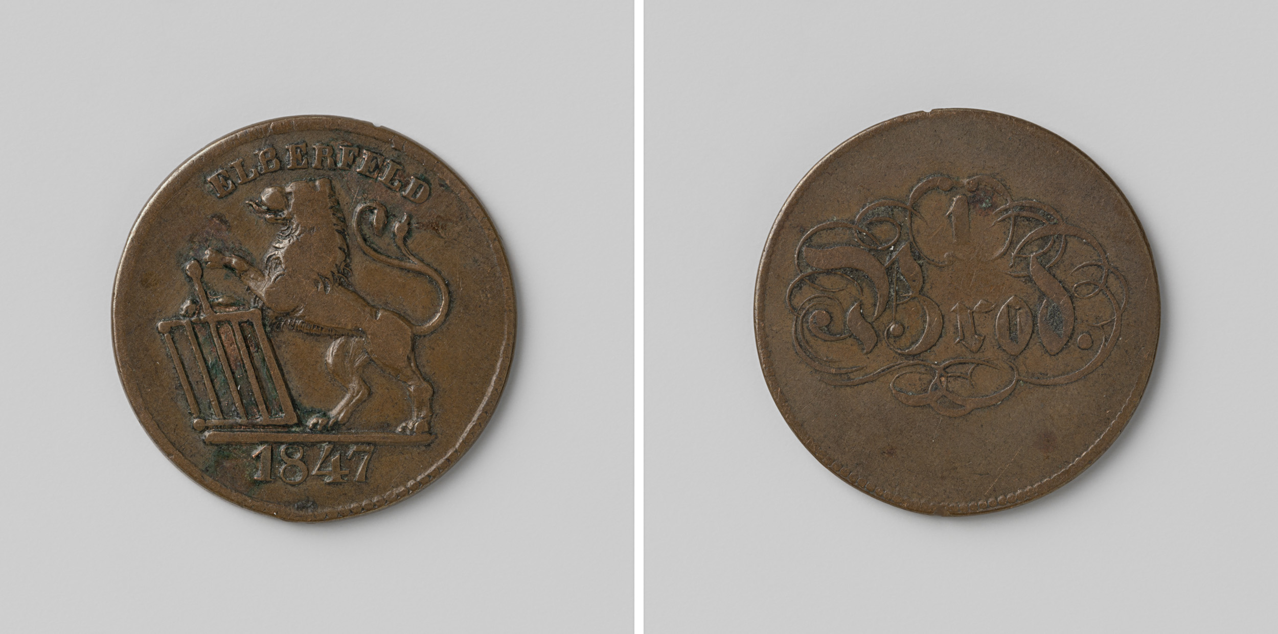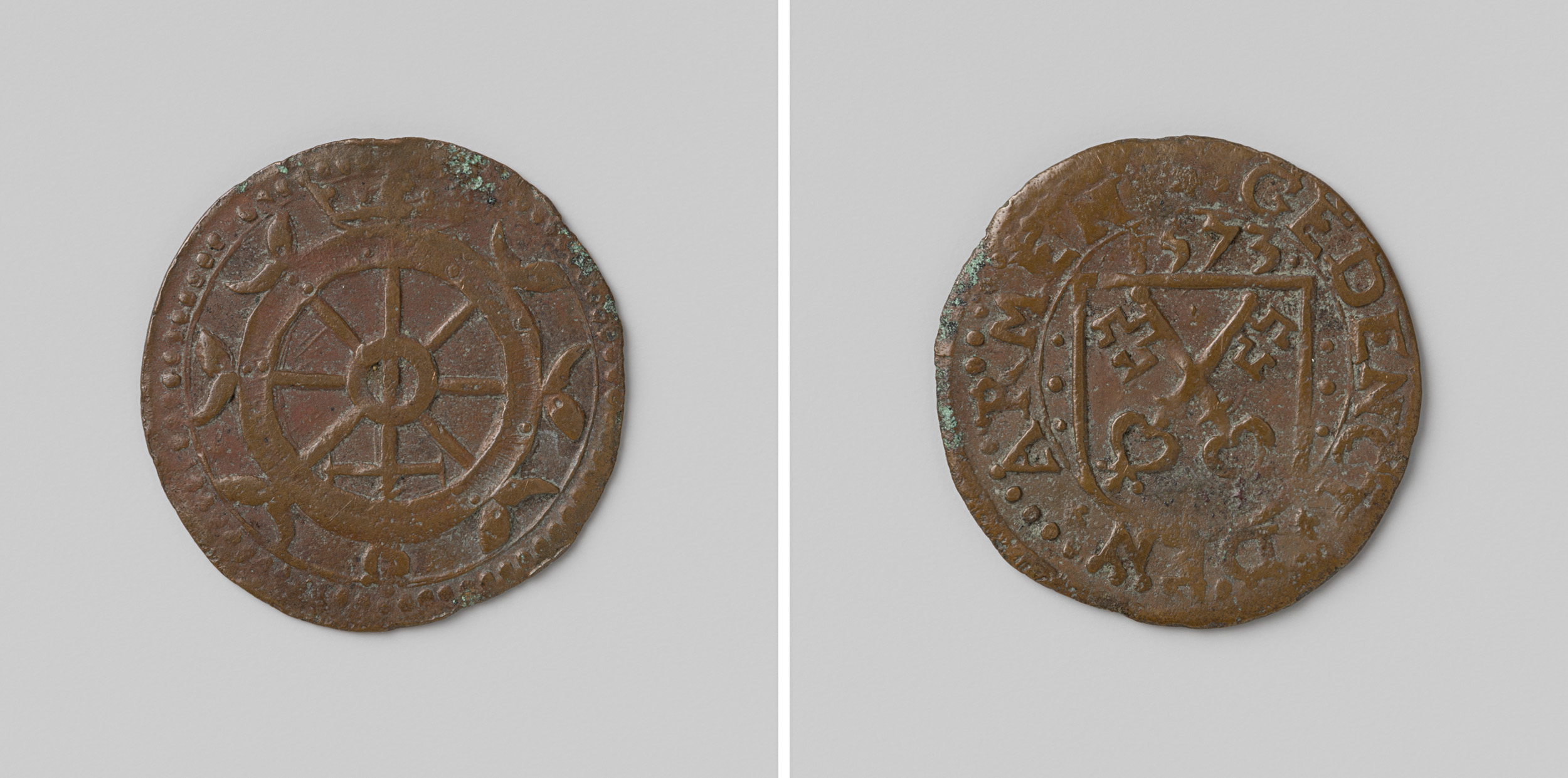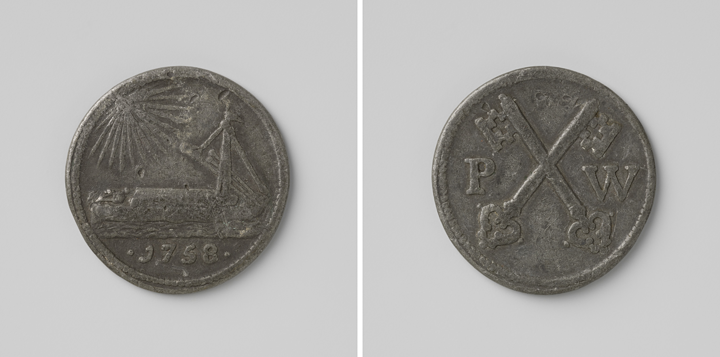 Armenpenning van de stad Leiden, die bij uitdeling r...