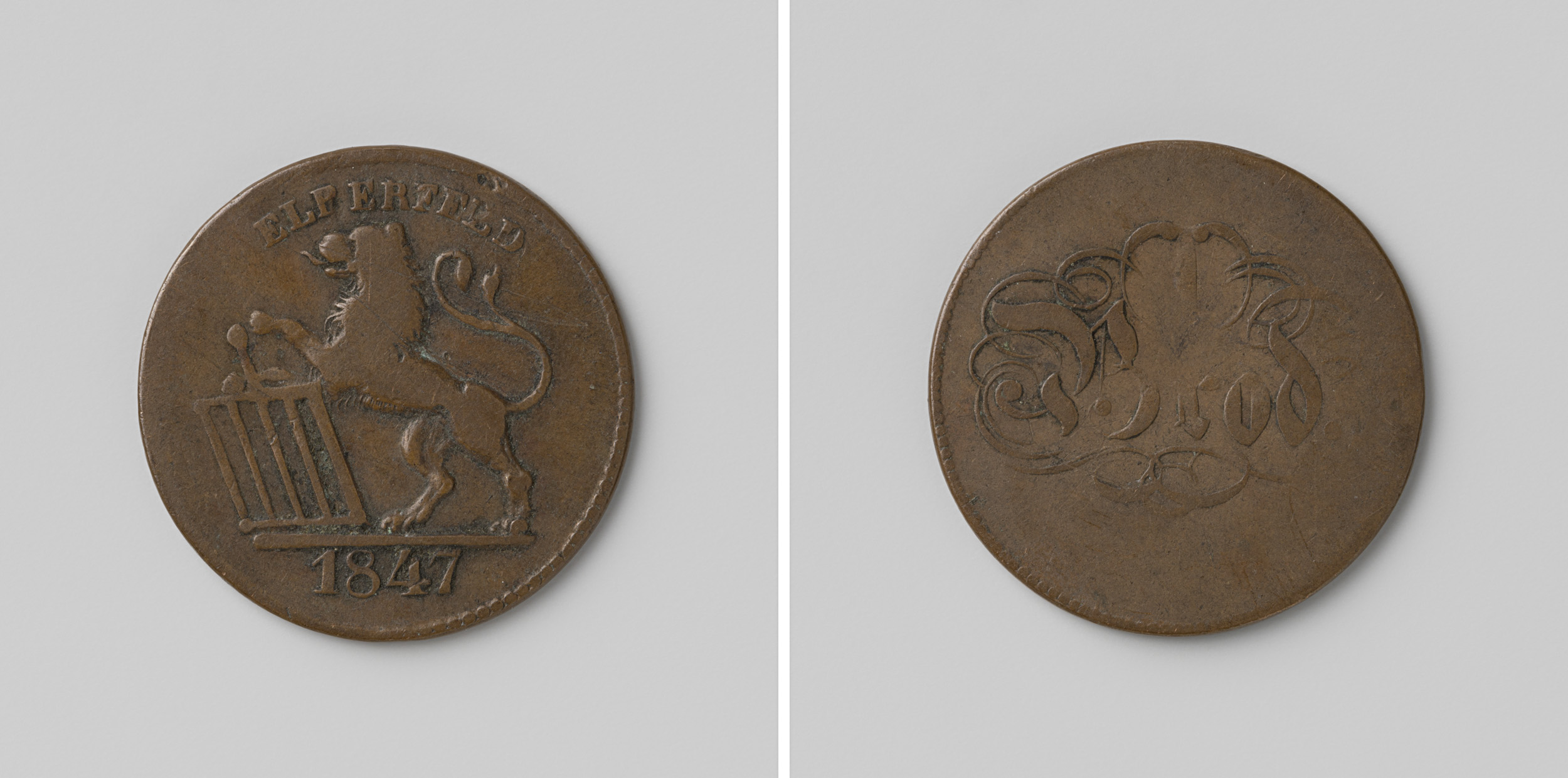 Stad Leiden, armenpenning die bij uitdeling recht ga...