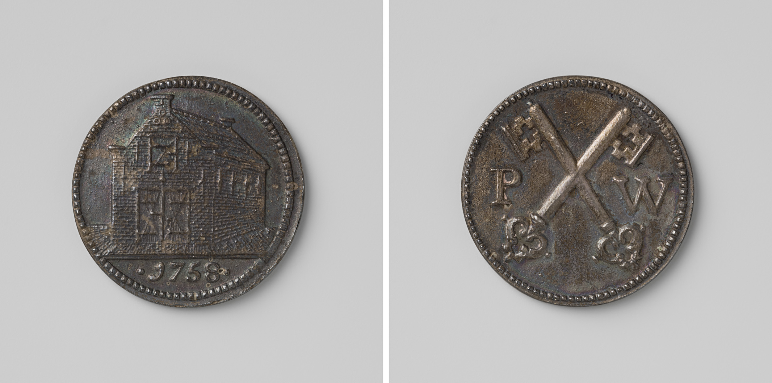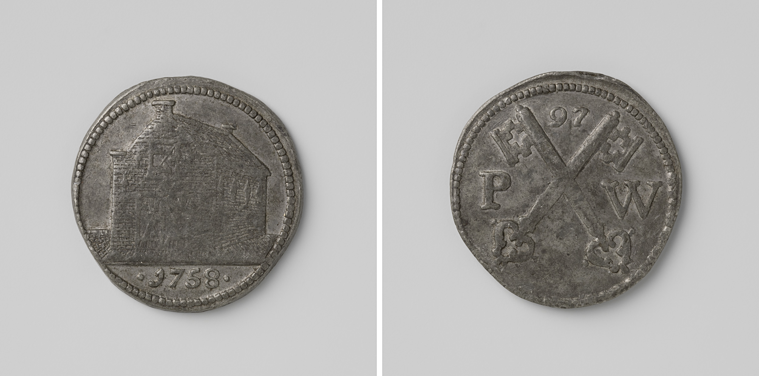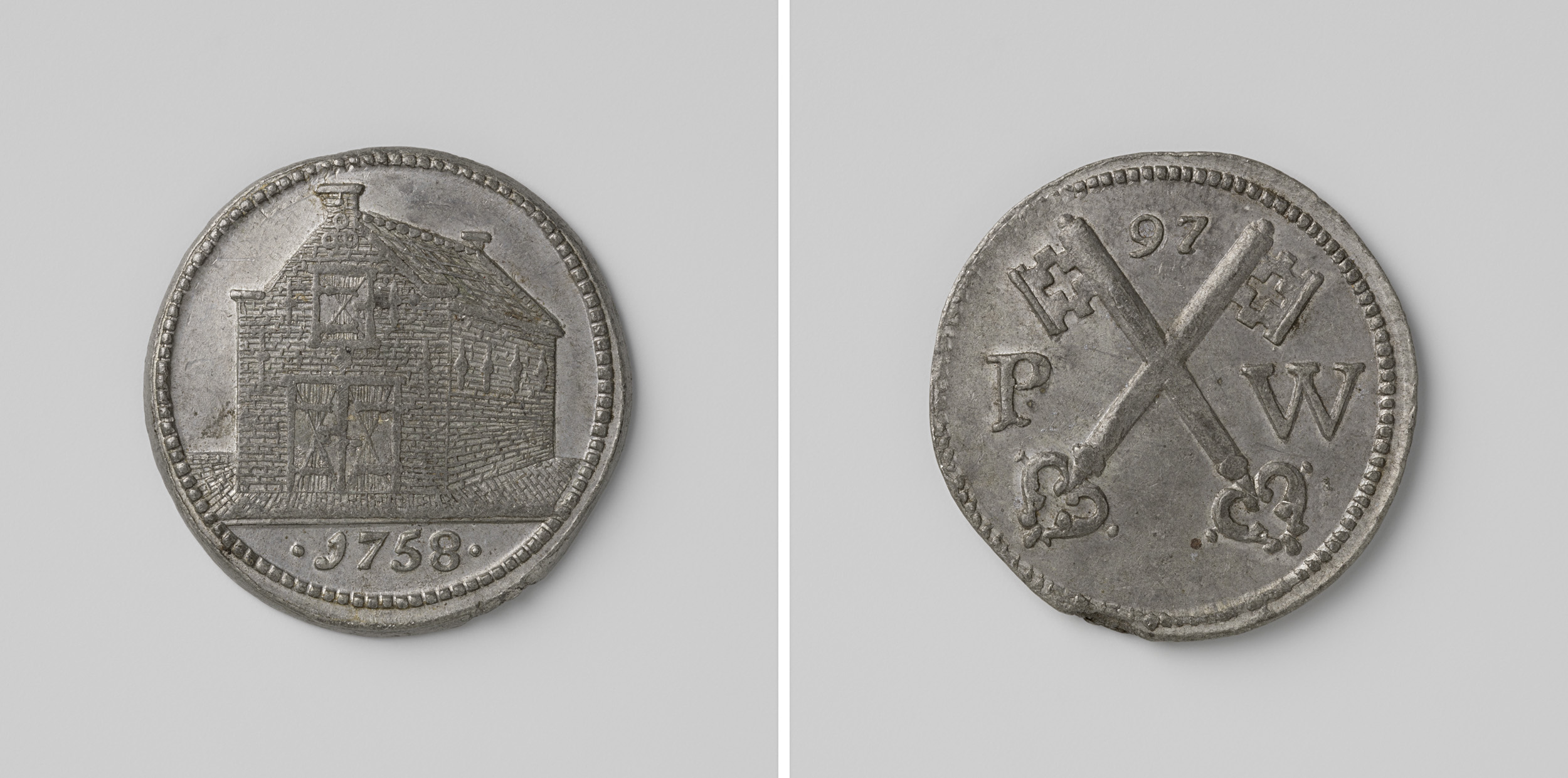 Huiszittenhuis te Leiden, armenpenning die bij uitde...