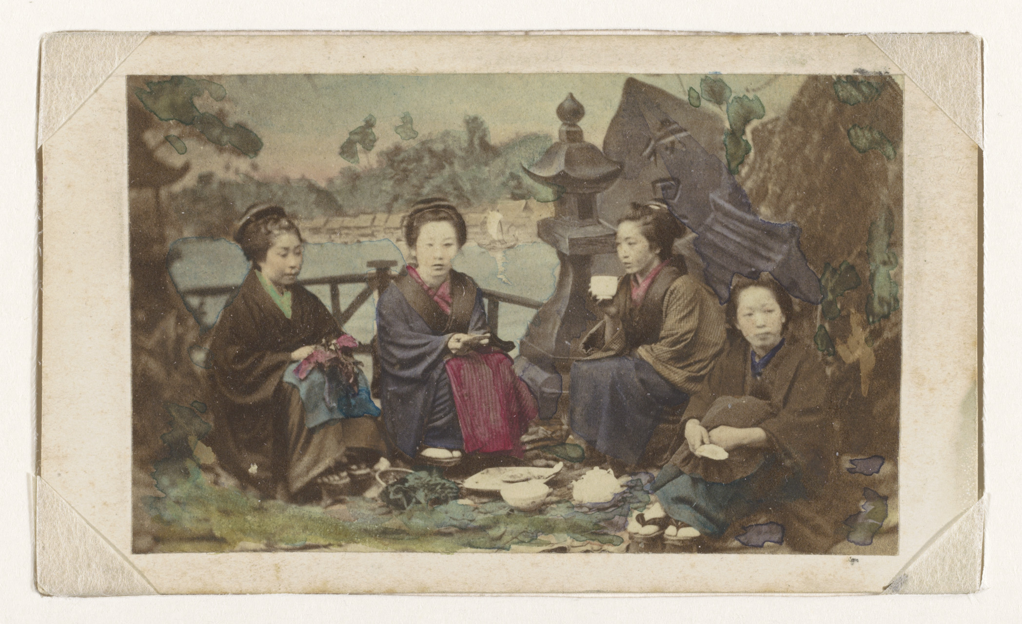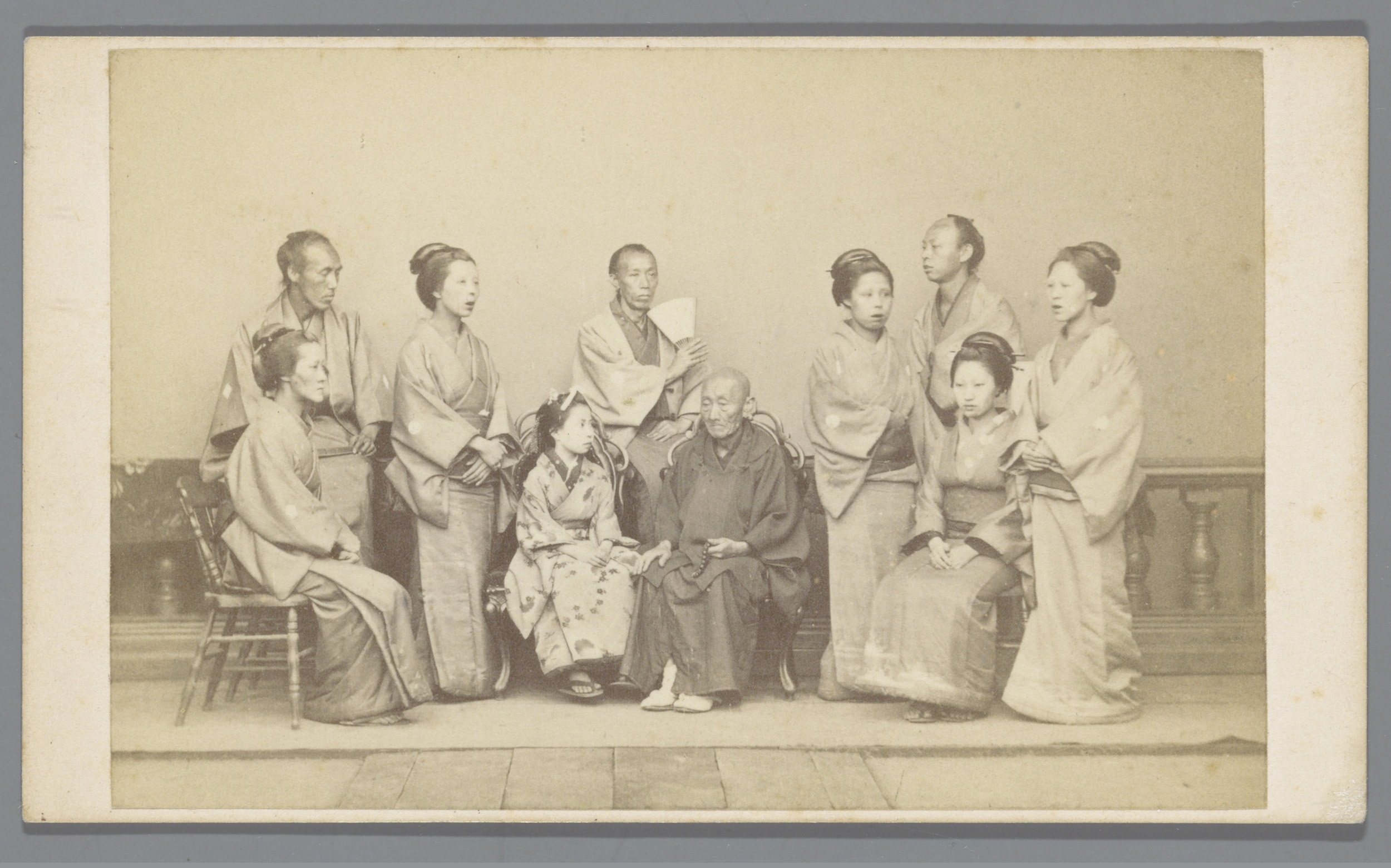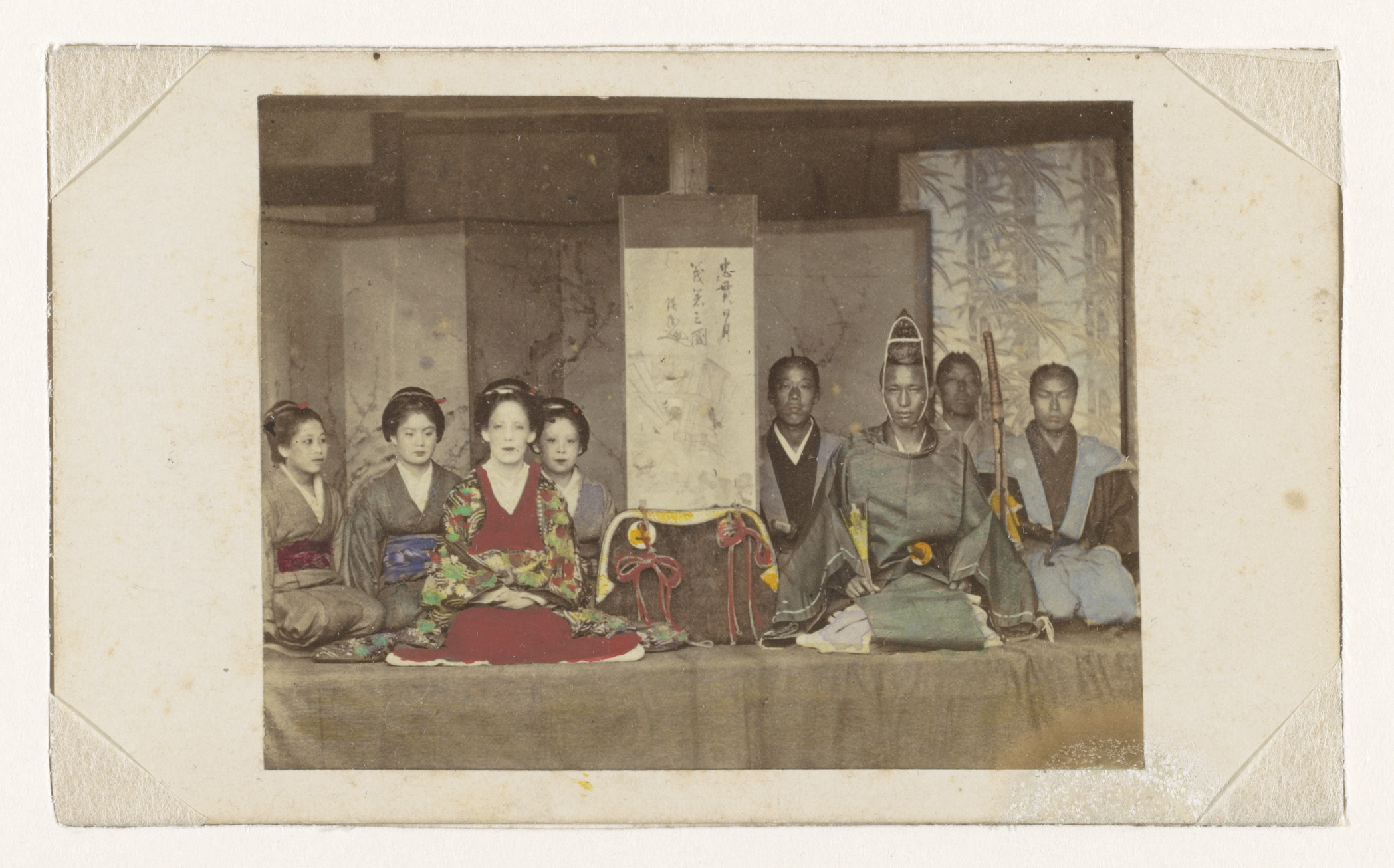 Groepsportret van acht onbekende Japanse vrouwen en ...