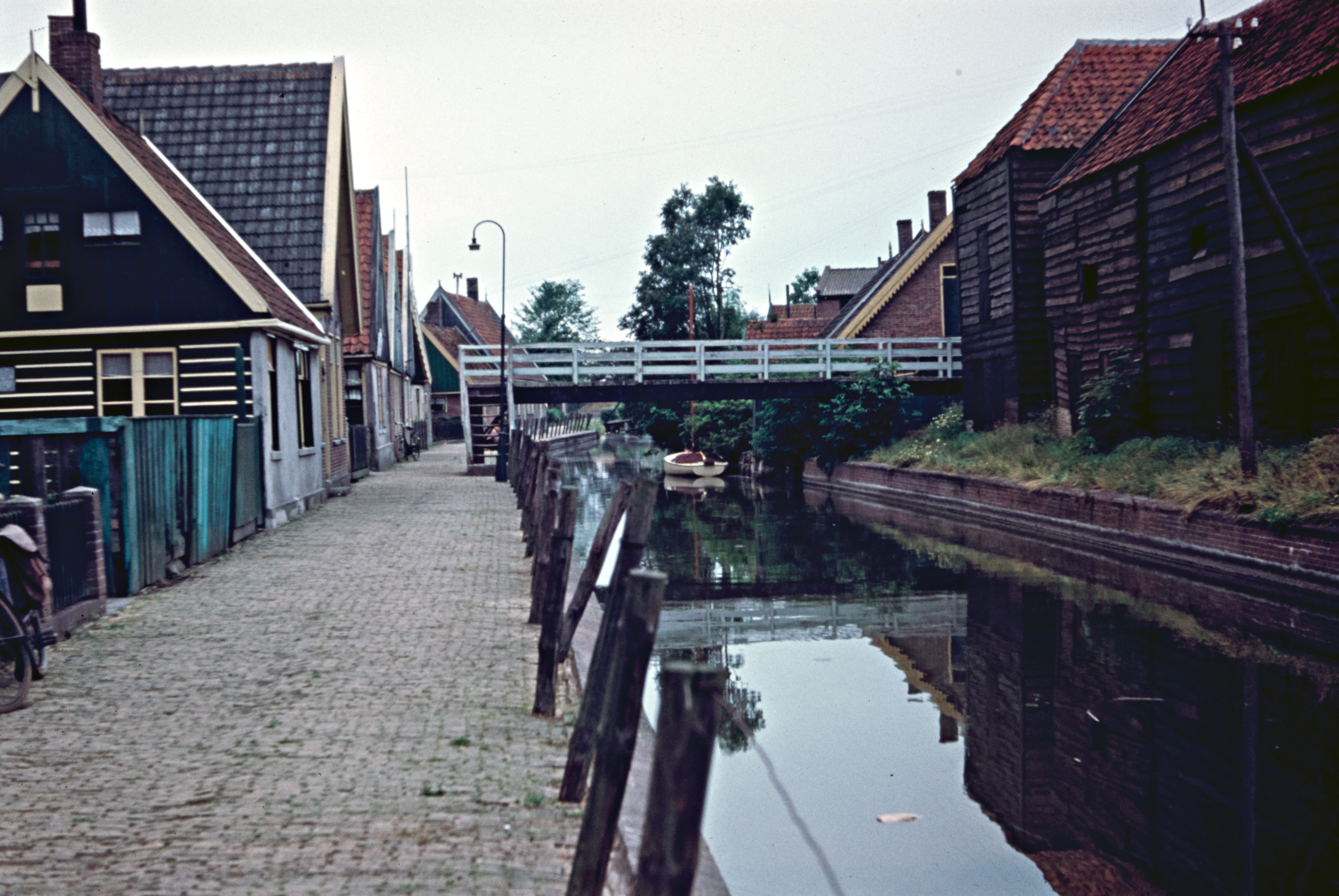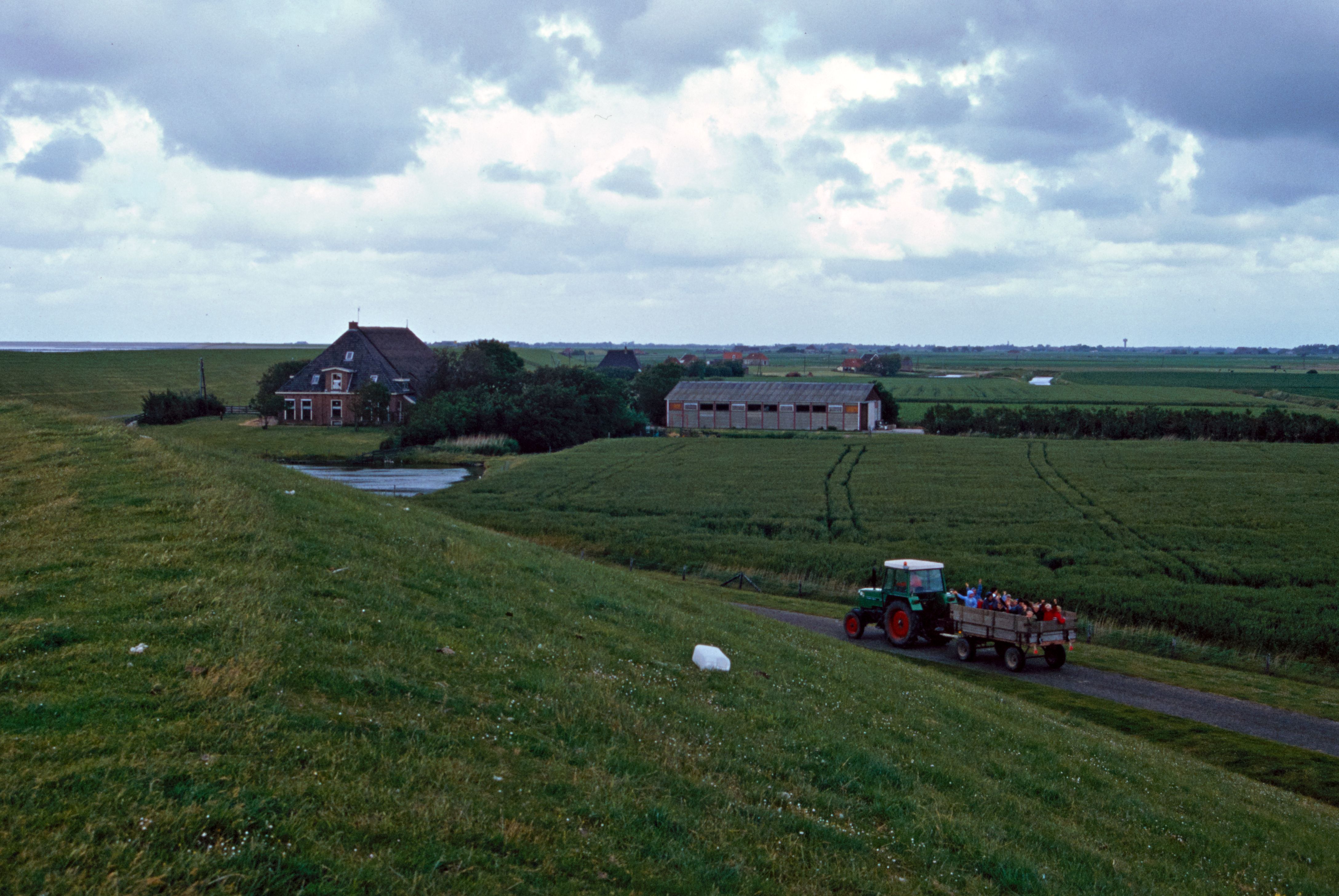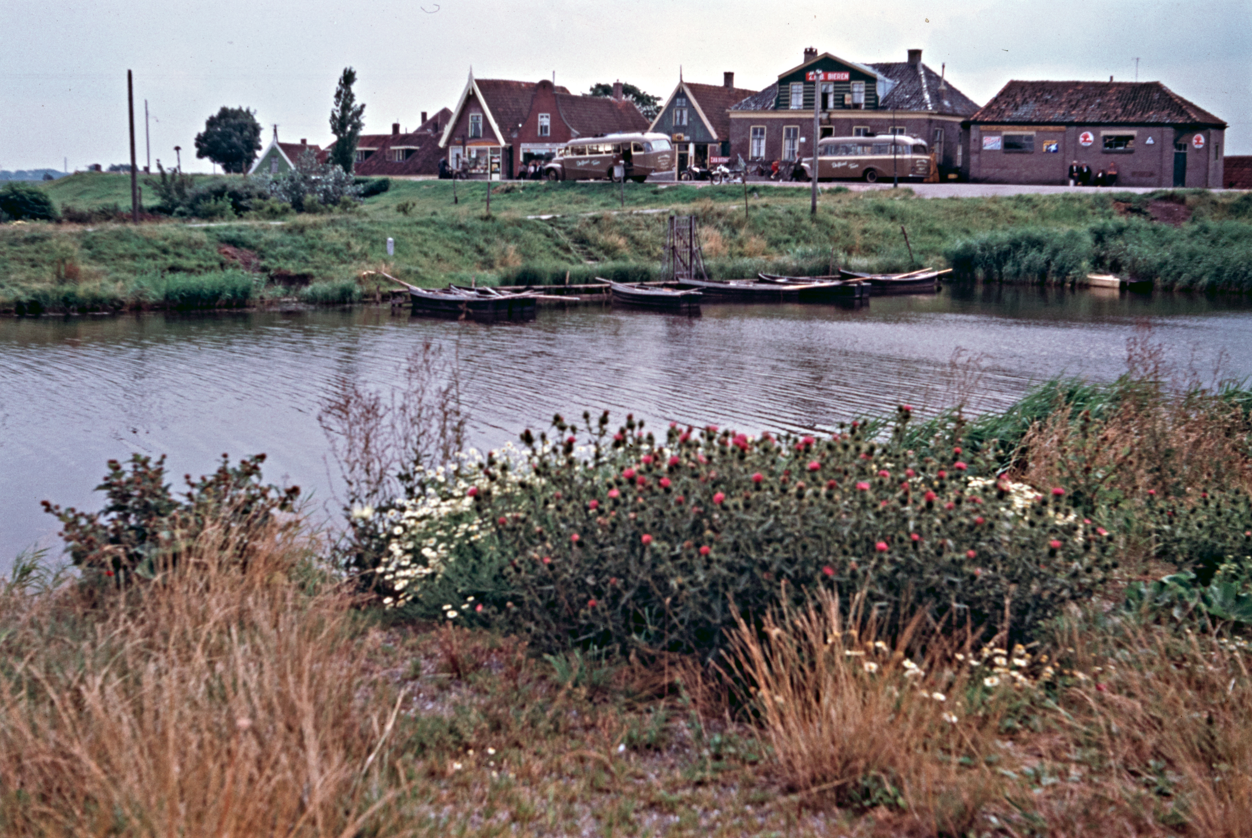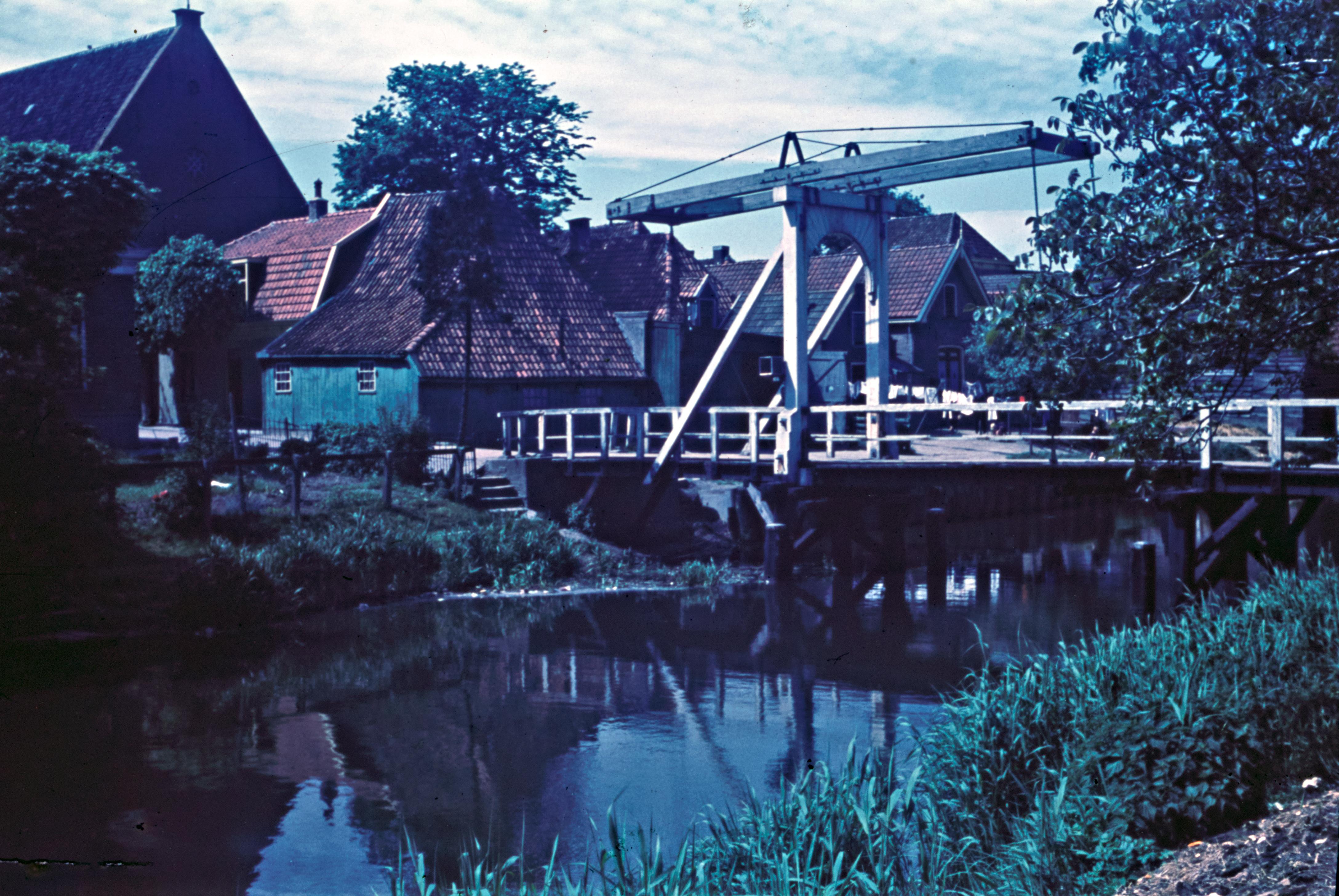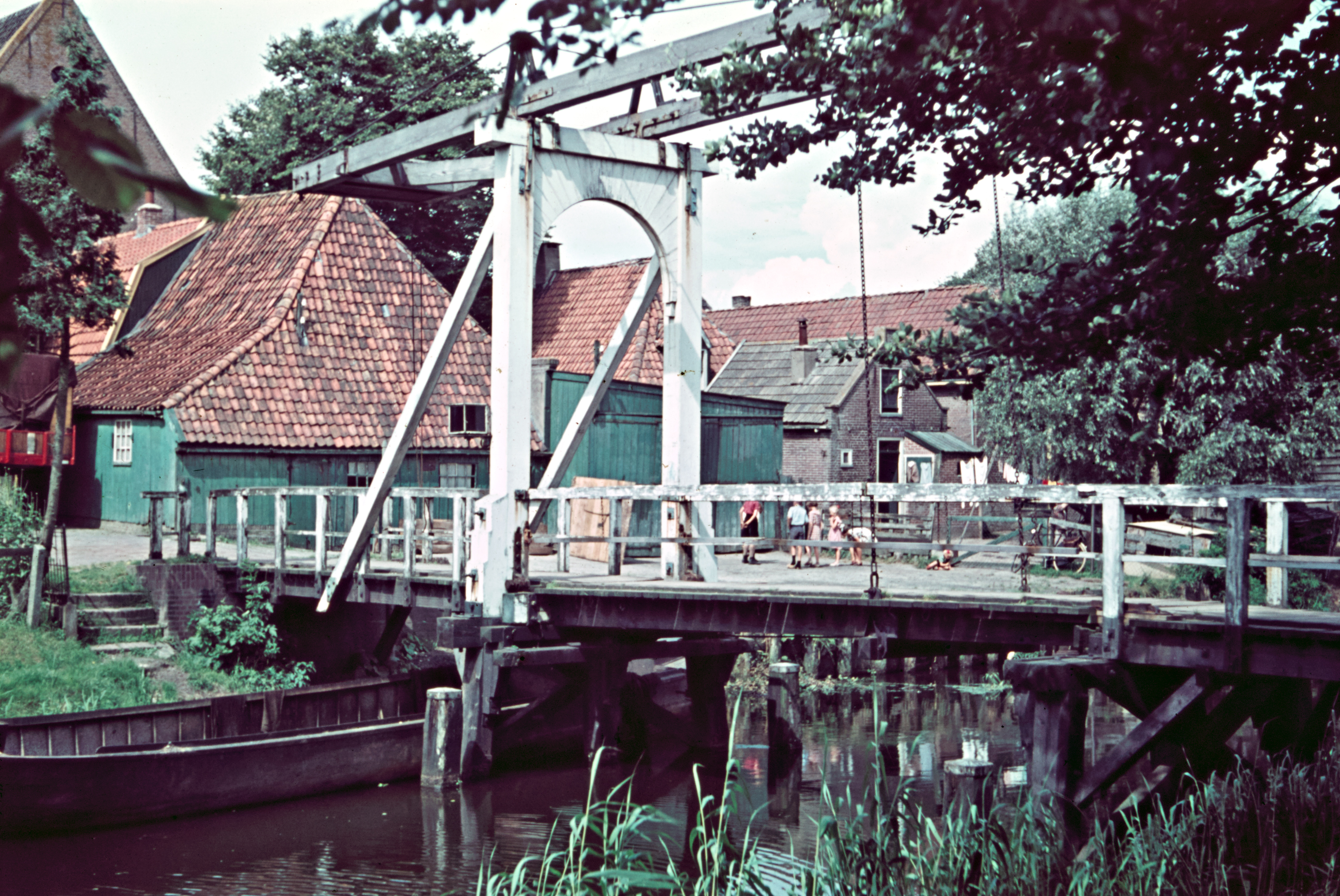 Kuinre gezien vanaf een boerenerf, raadhuis in de verte