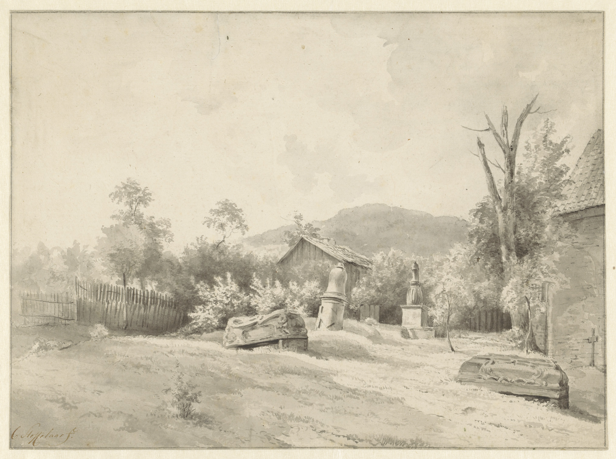 Apollo, ten halven lijve, en schets van een vaas