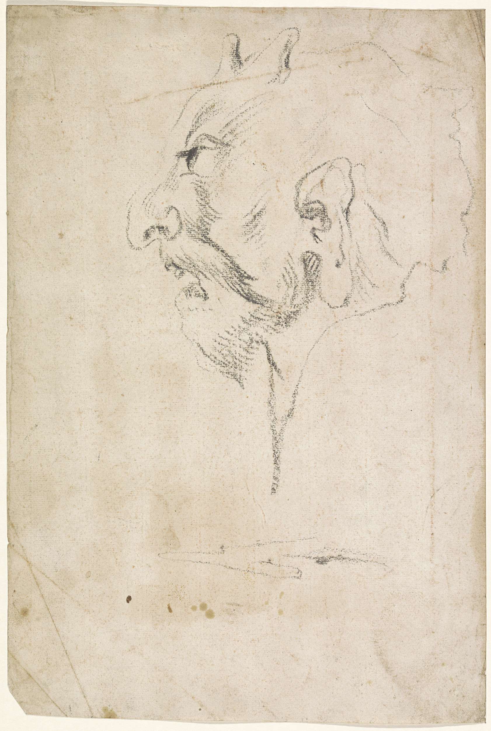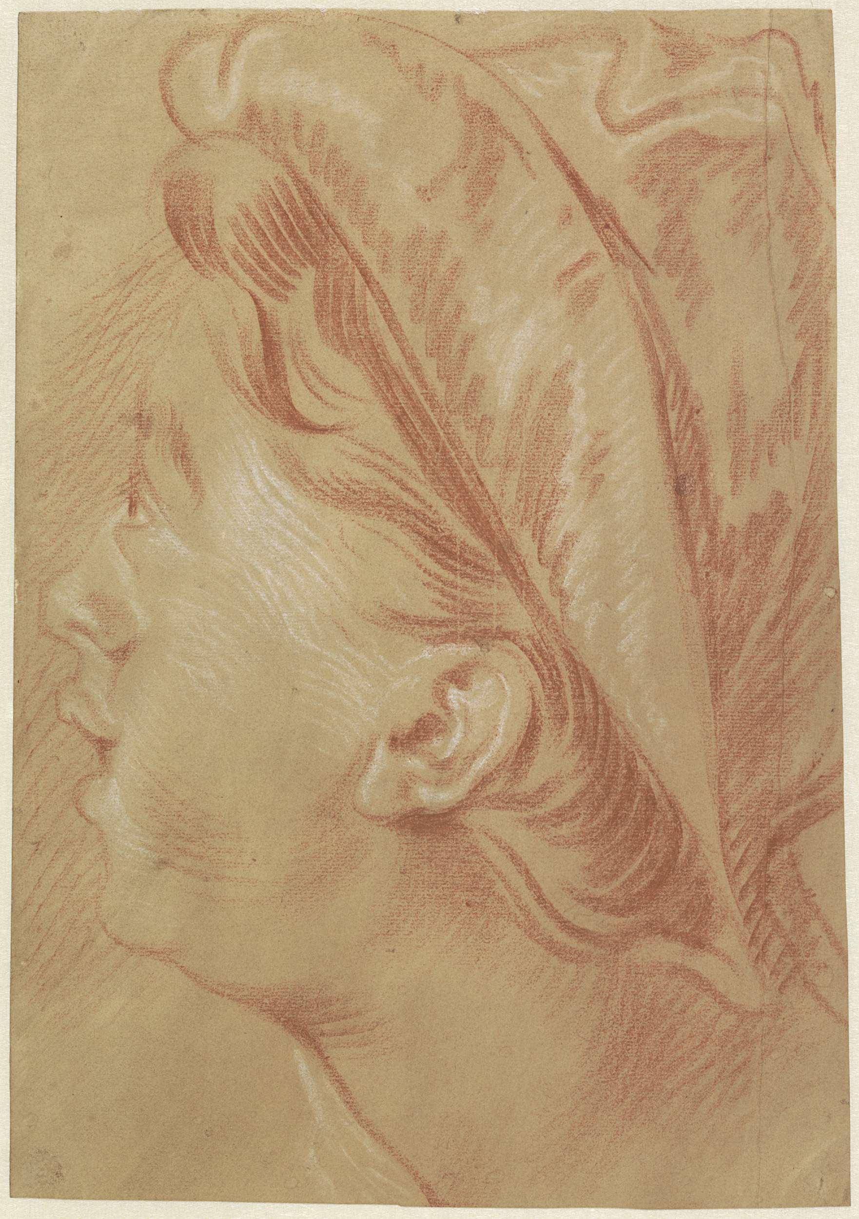 Hoofd van een oude man, en profil naar rechts