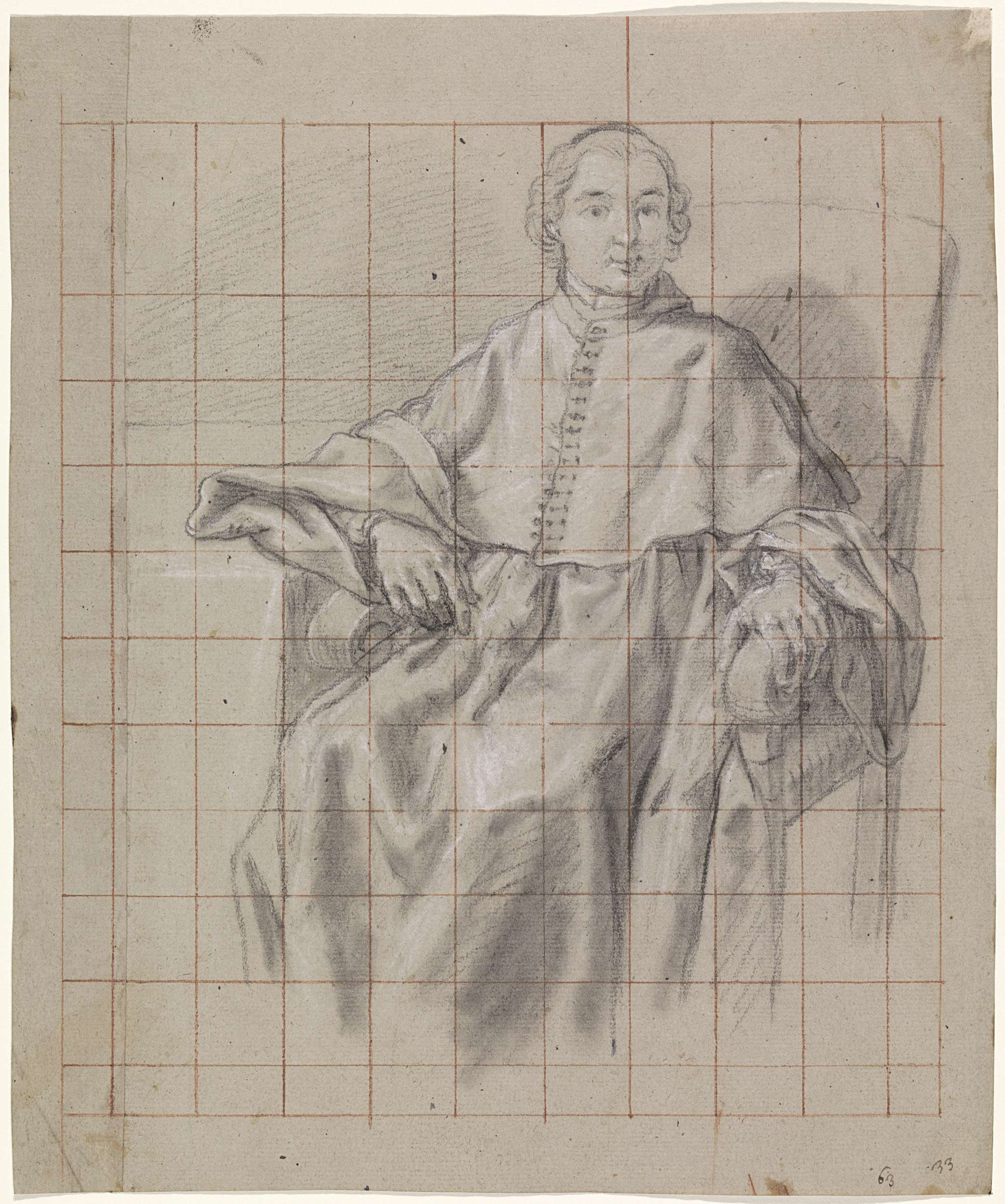 Portret van een zittende geestelijke, bijna ten voet...