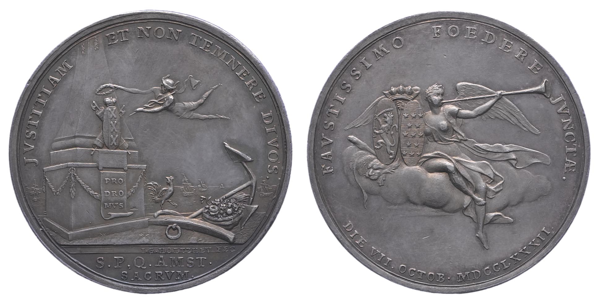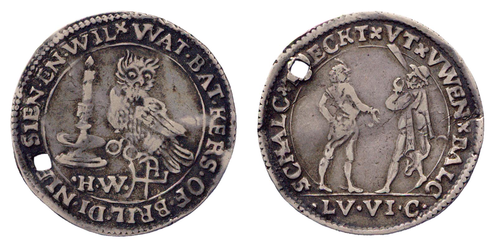 Amsterdamse penning op de eendracht in de vierde oor...
