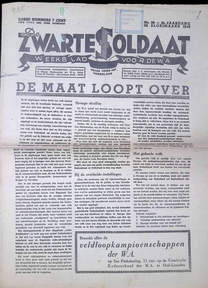 De Zwarte Soldaat, weekblad van NSB weerafdeling, ja...