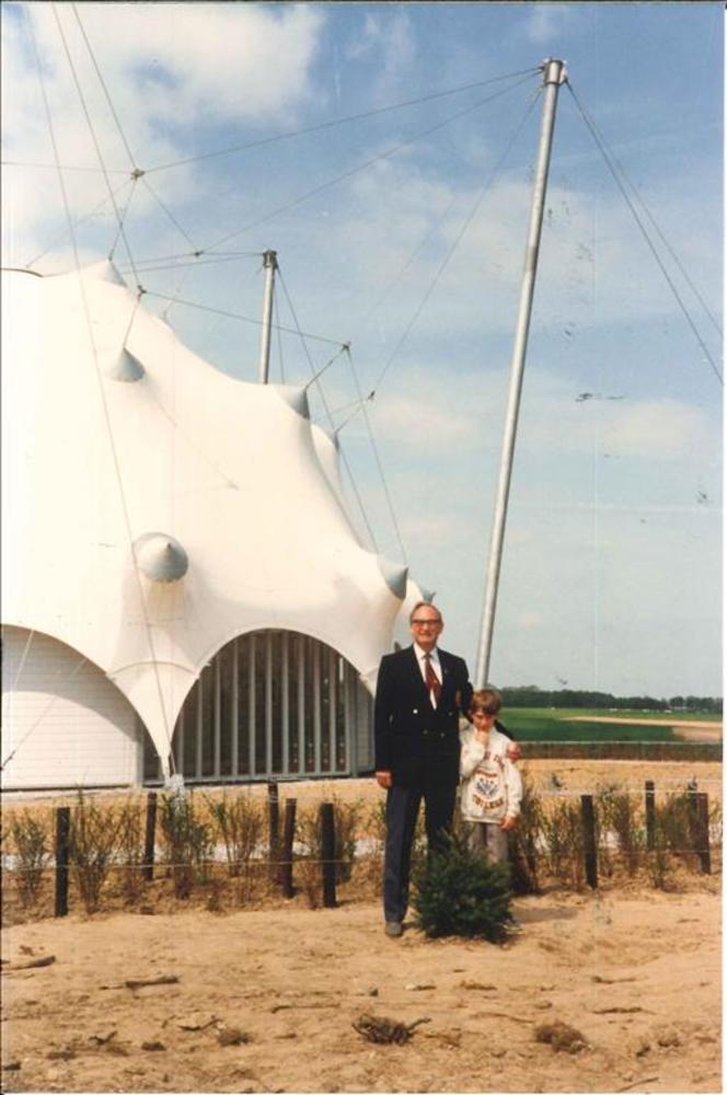 Glider pilot Roger Hardy en kleinzoon voor de koepel...