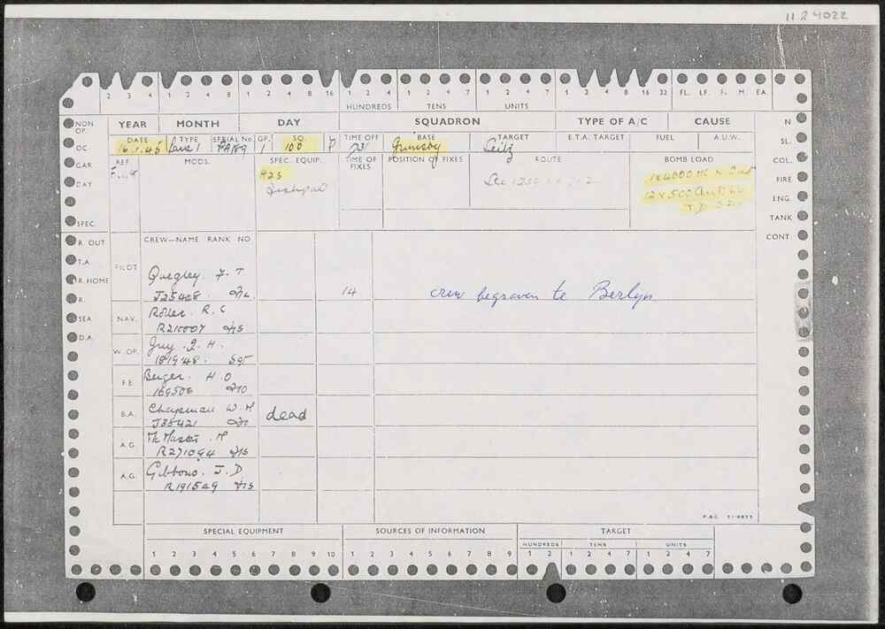 Loss card Lancaster Mk I PA 189, 16 januari 1945.