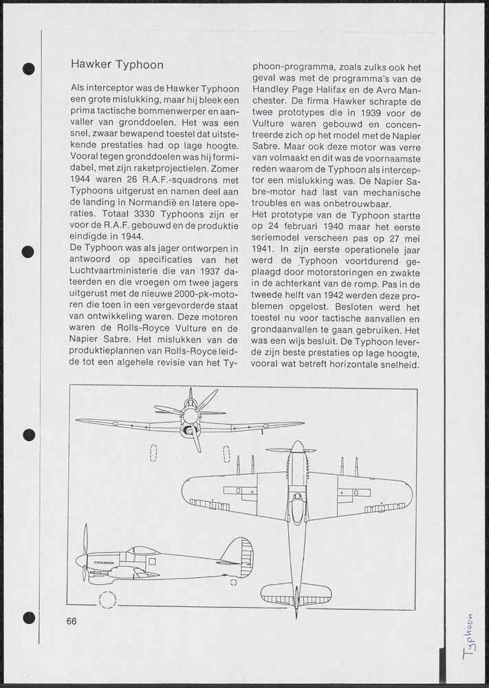Korte beschrijving van het vliegtuig Hawker Typhoon ...