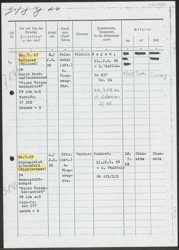 Namentliche Verlustmeldungen van 30 juli 1943.