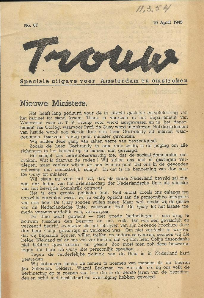 Trouw, speciale uitgave voor Amsterdam en omstreken,...