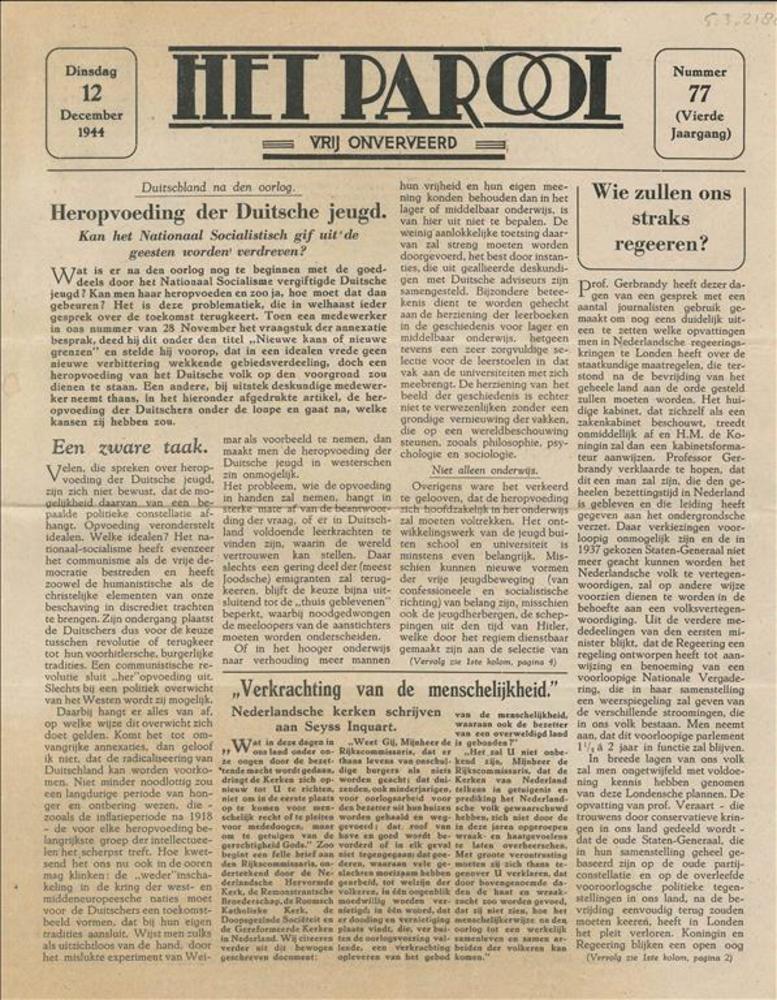 Het Parool, vrij onverveerd, No. 77, Vierde jaargang...