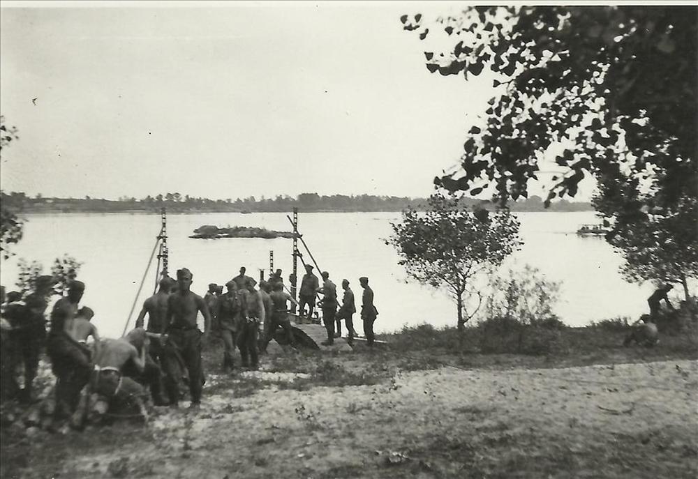 Duitse militair, aanlegsteiger, rivier, Rusland