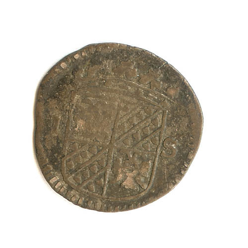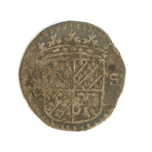 Stuiver met gekroond wapenschild 1 S, keerzijde met ...