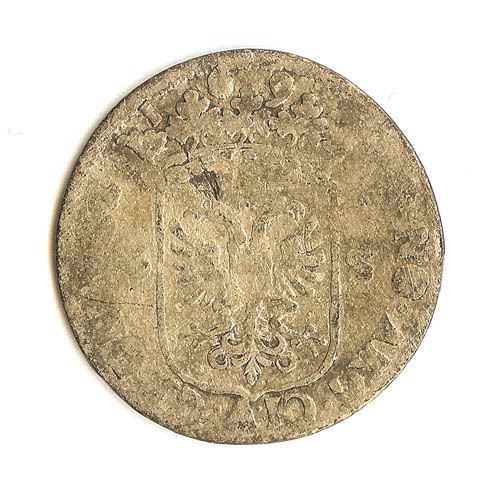 Zes stuiver stuk, 6 stuivers, met op voorzijde gekro...
