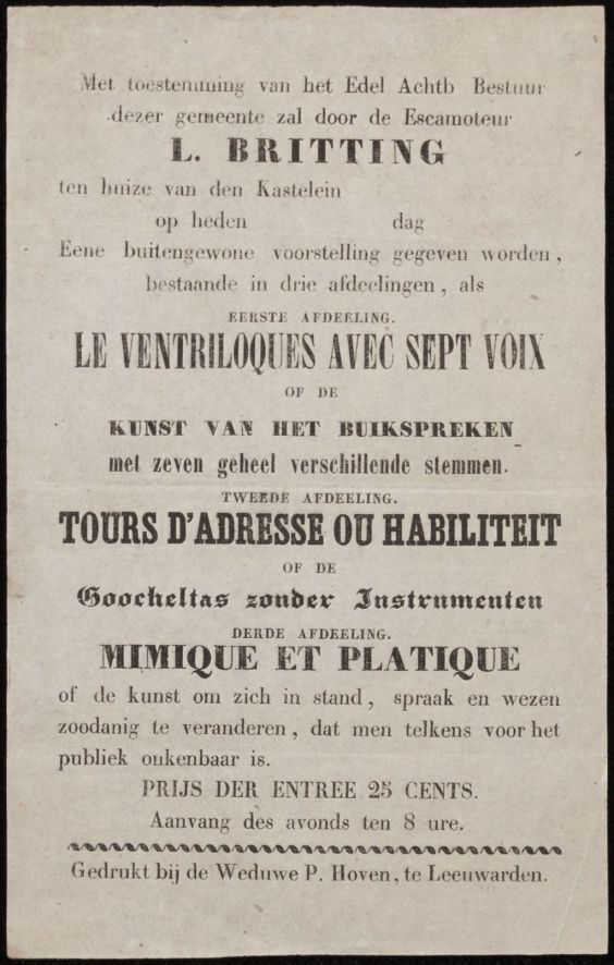 Advertentie voor een optreden van de menagerie op de...
