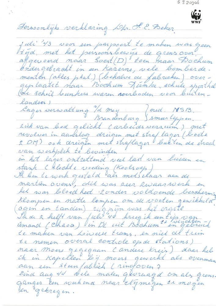 Verklaring H.E. Beker betreffende dwangarbeid in Dui...
