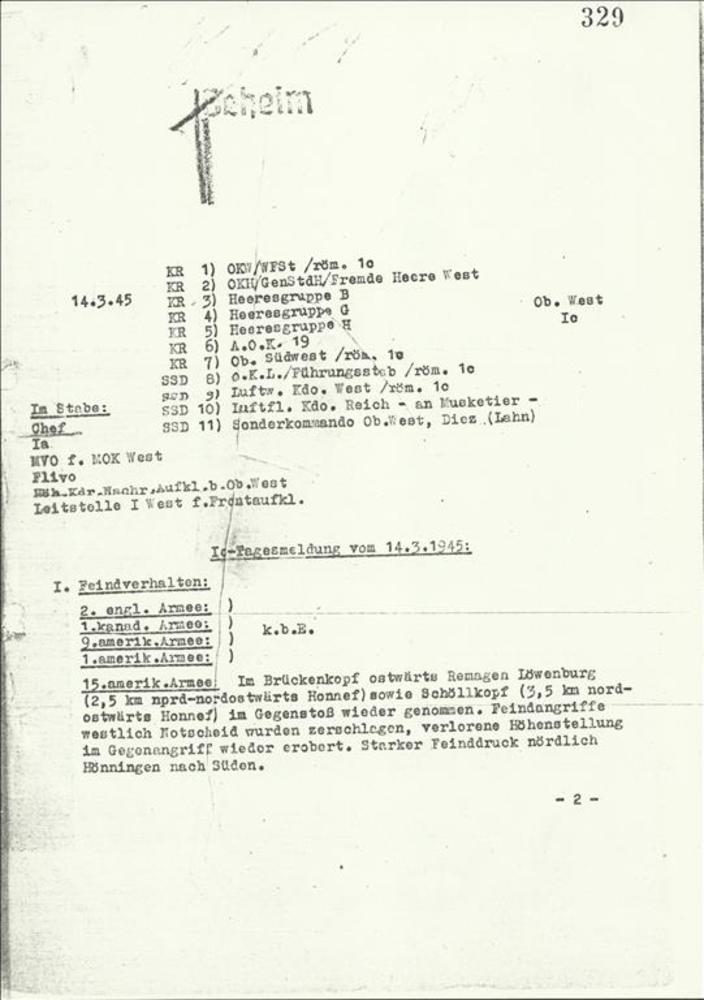 Bericht van de Oberbefehlshaber West / röm, 1 c nr 1...