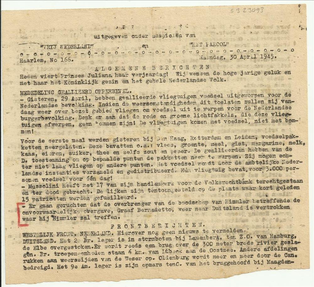 De Vrije Pers, Haarlem, No 166, 30 april 1945