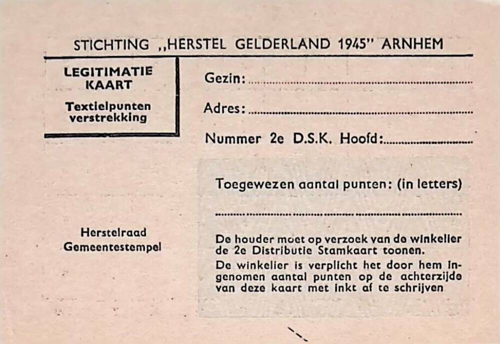 Legitimatiekaart Stichting Herstel Gelderland 1945 A...