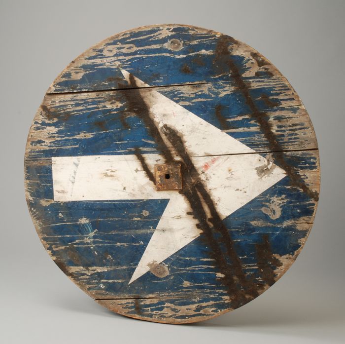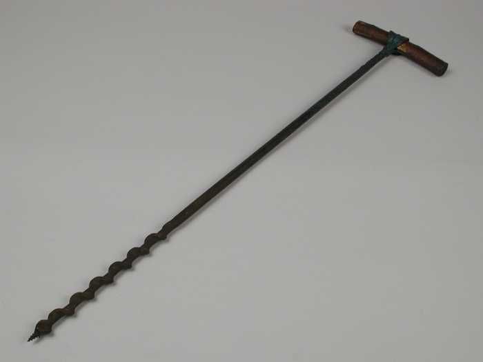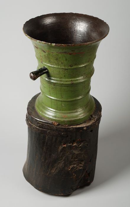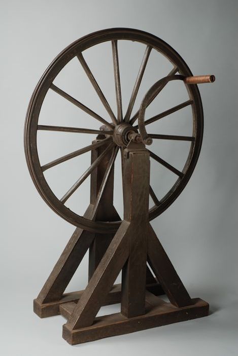 Handbediend, houten aandrijfwiel met zwengel, uit ti...