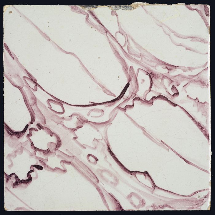 Muurfragment met daarop tegels en tegelfragmenten in...