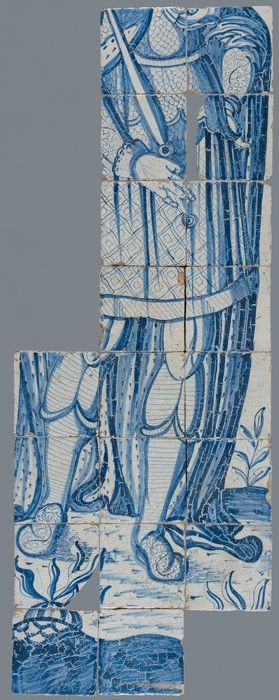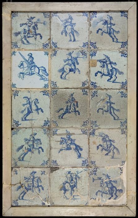 Tegelveld, vijftien blauwe tegels, ruiters, hoekmoti...