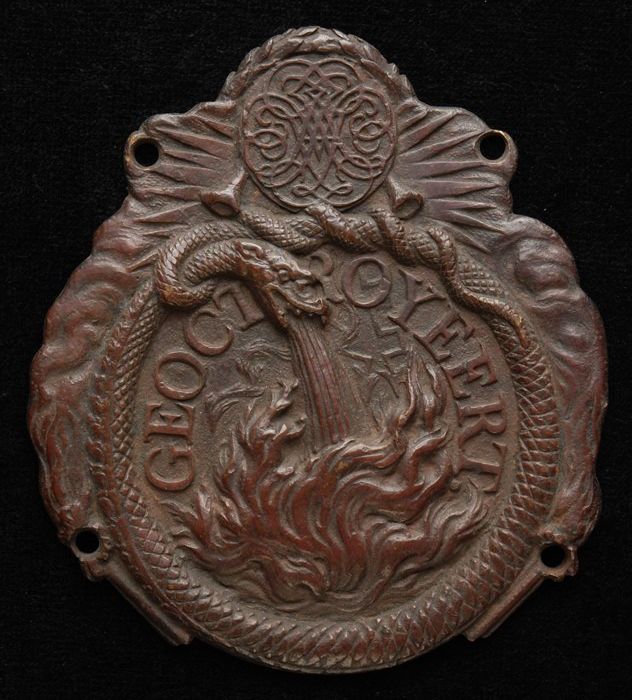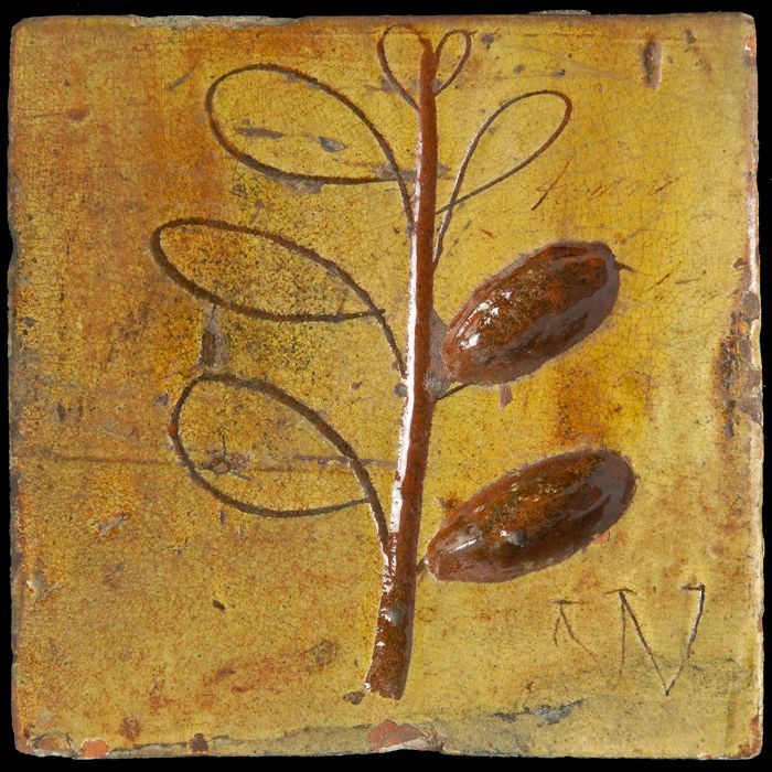 Plavuis of tegel, rood aardewerk, met tak en tekst i...