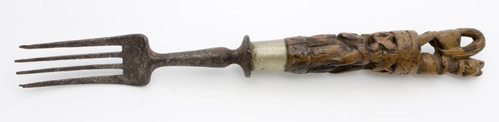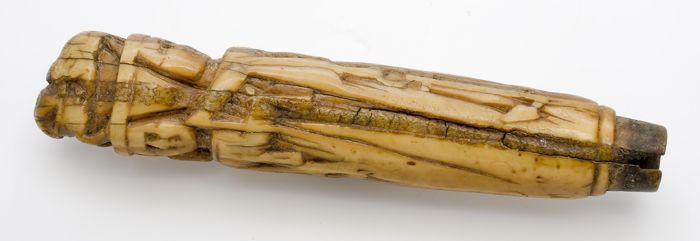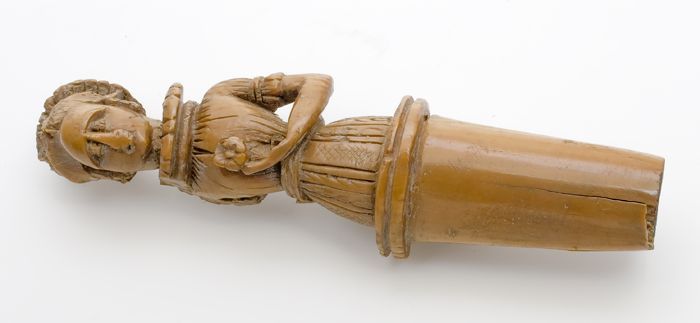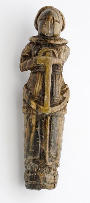 Gesneden ivoren heft, vrouw met anker: 'Hoop'