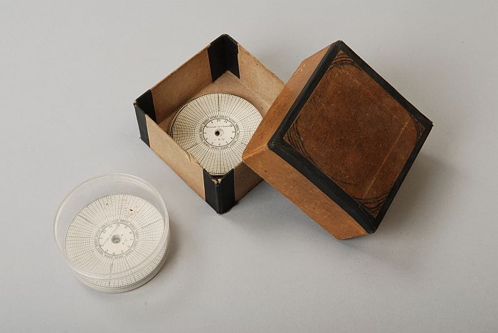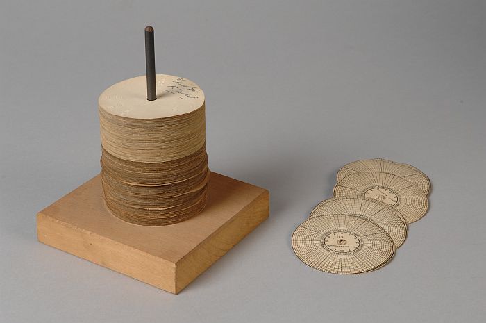 Papieren schijven voor nachtwakersklok van de bewaki...