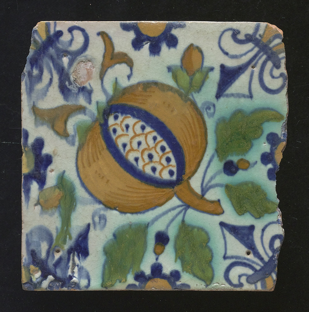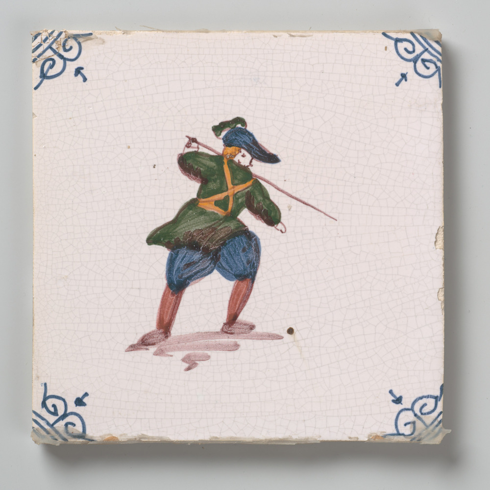 Tegel van keramiek met tinglazuur, voorstellende: or...