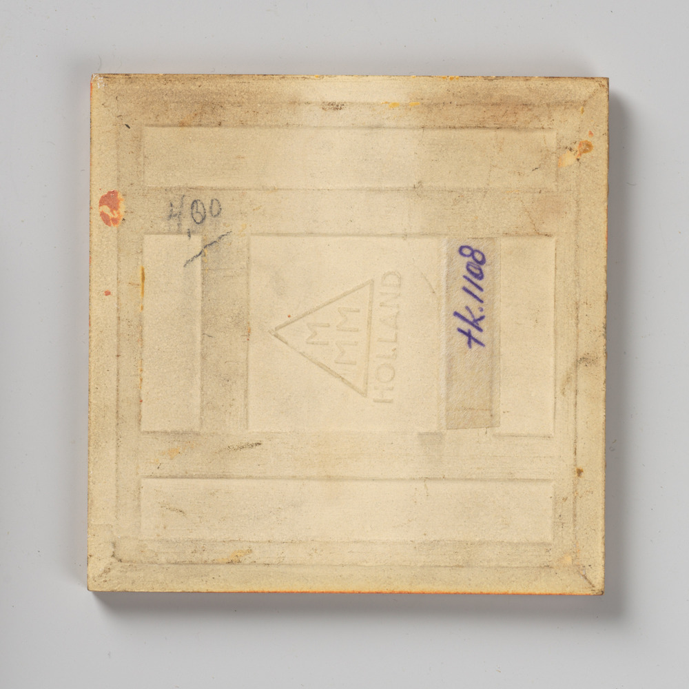 tegel van aardewerk met tinglazuur, voorstellende: o...