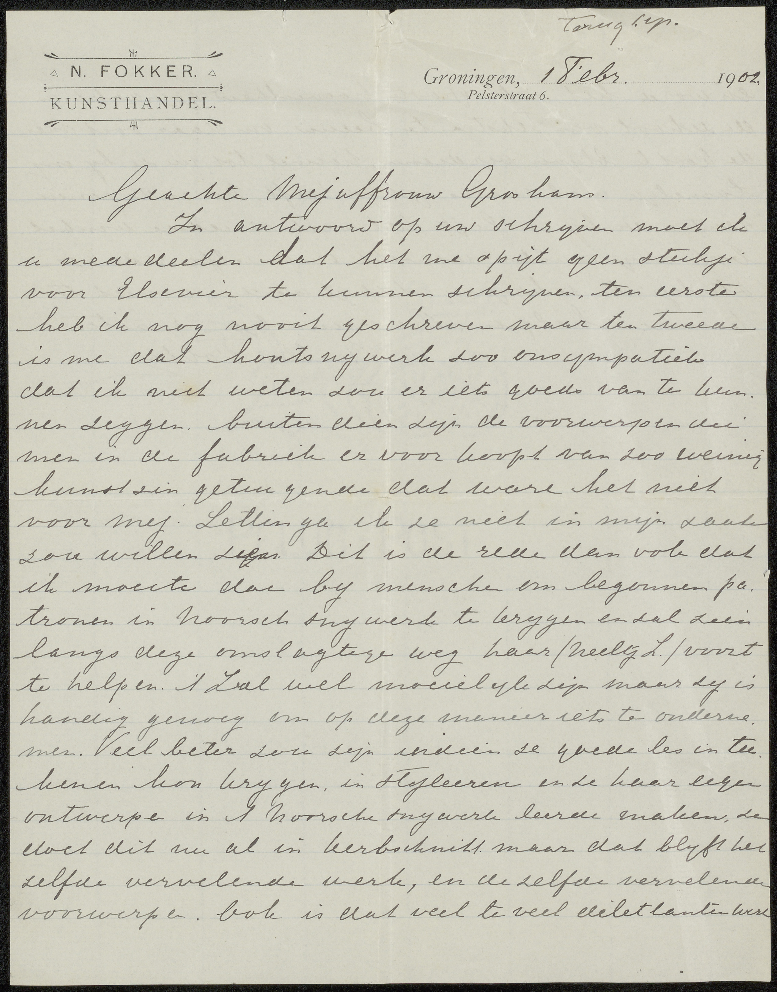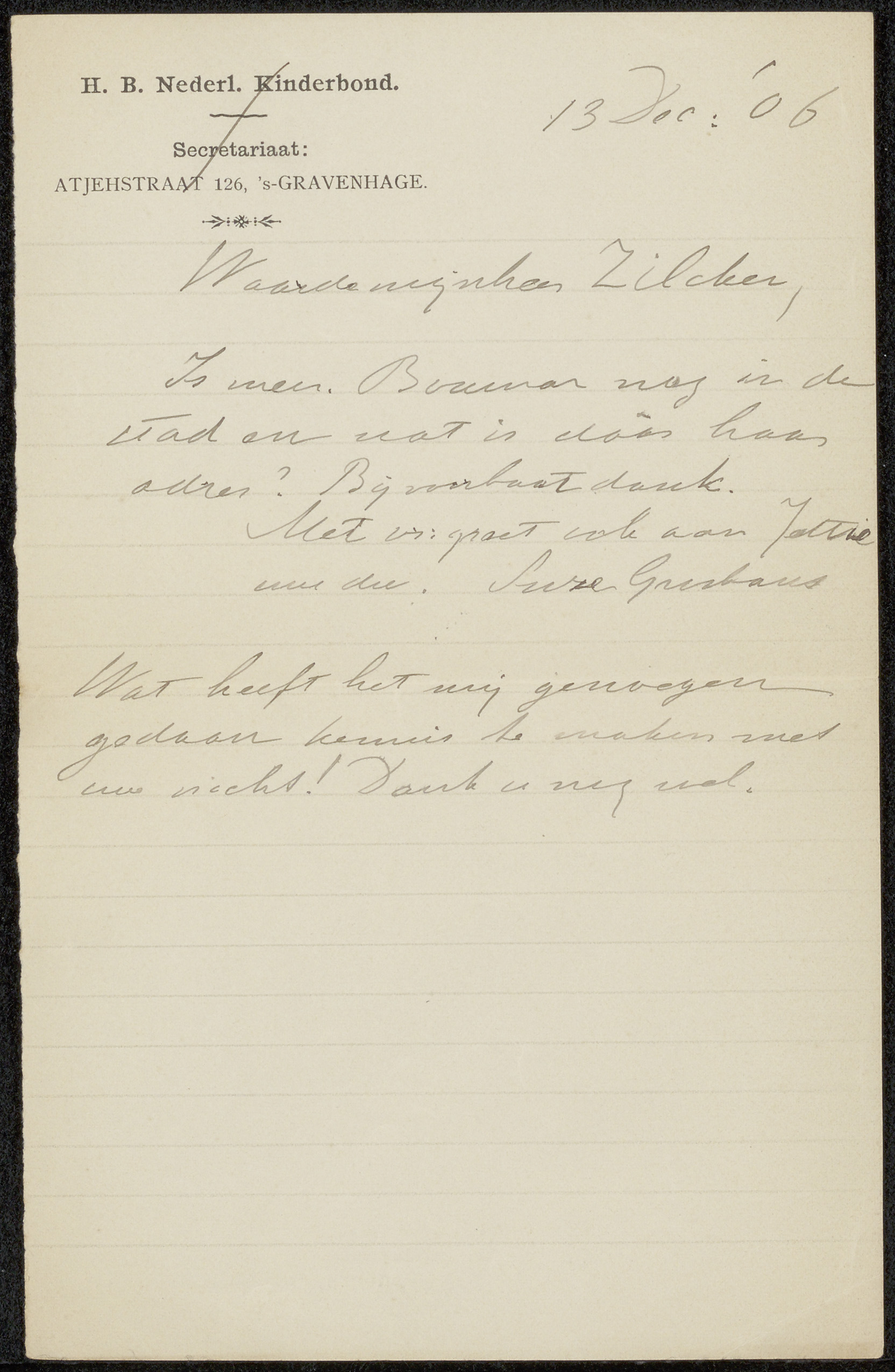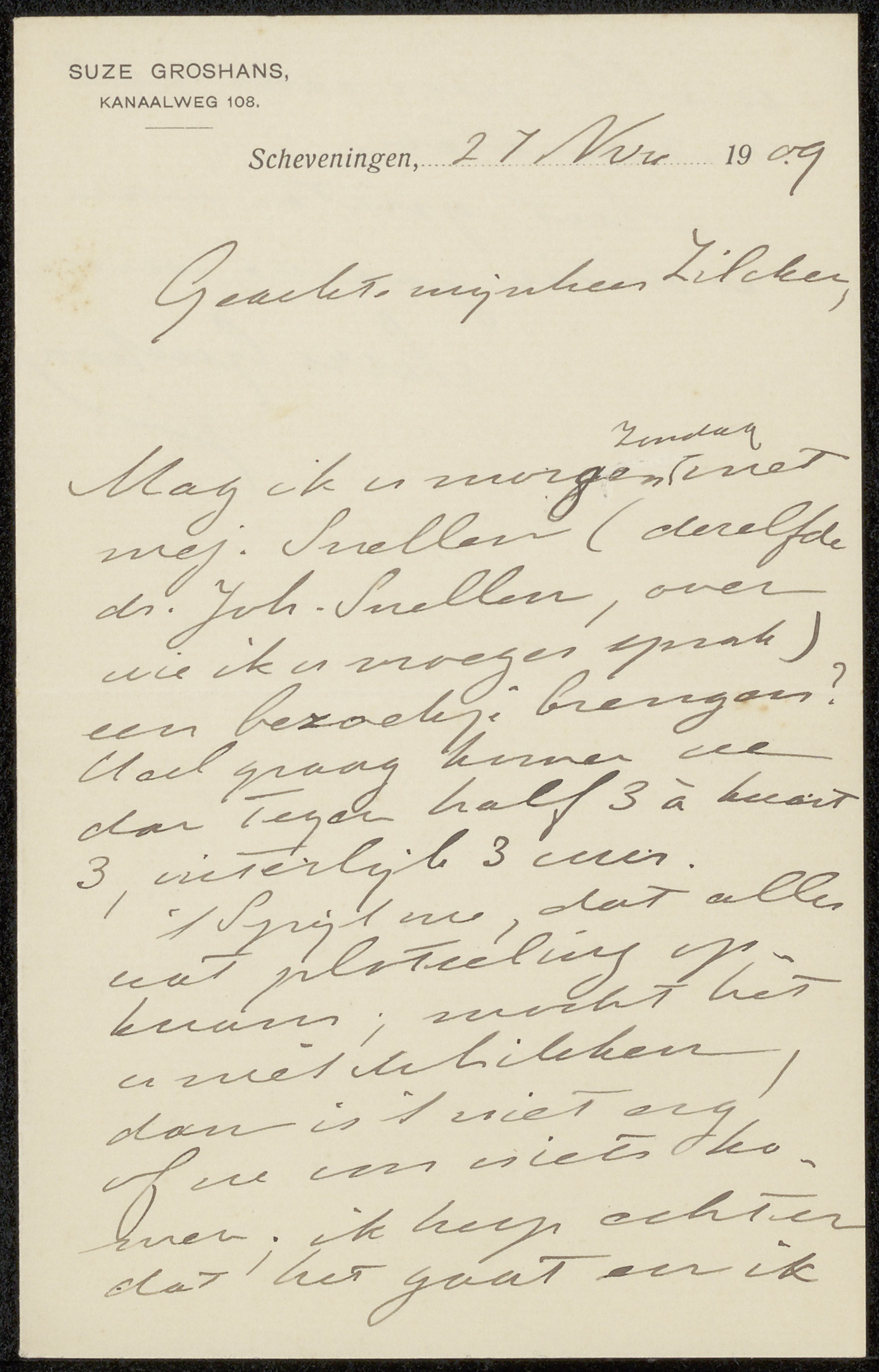 Brief aan Suze Groshans