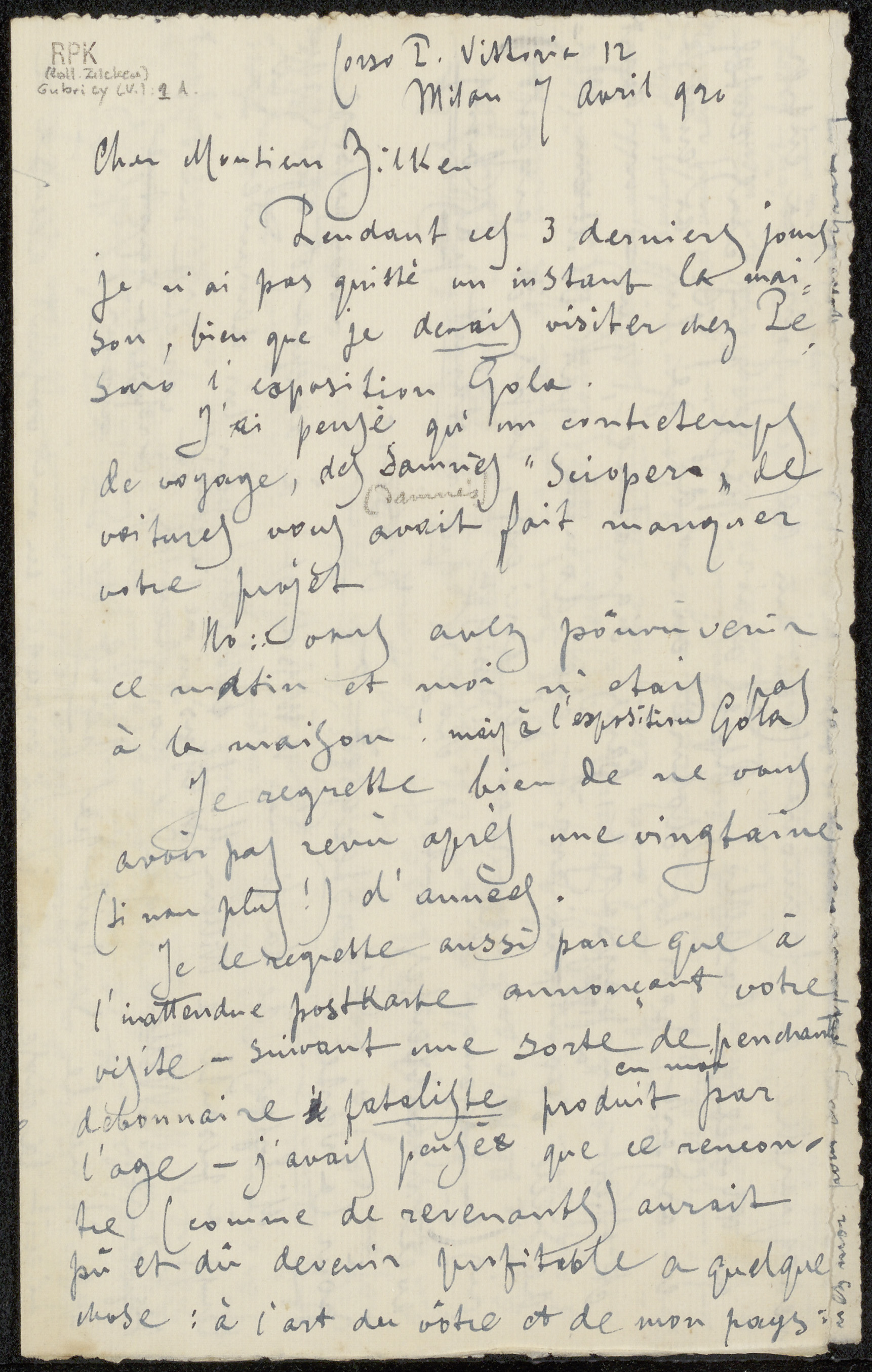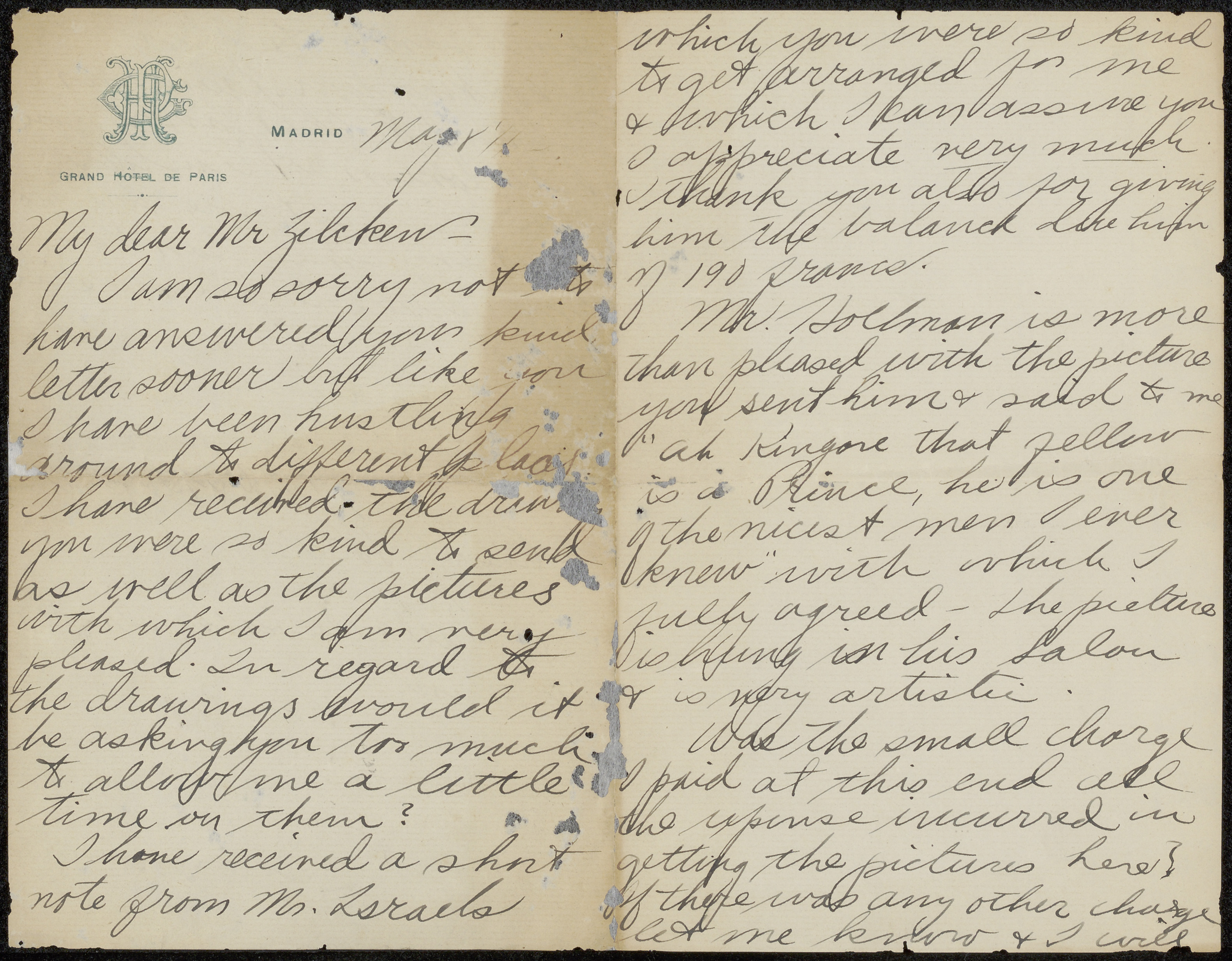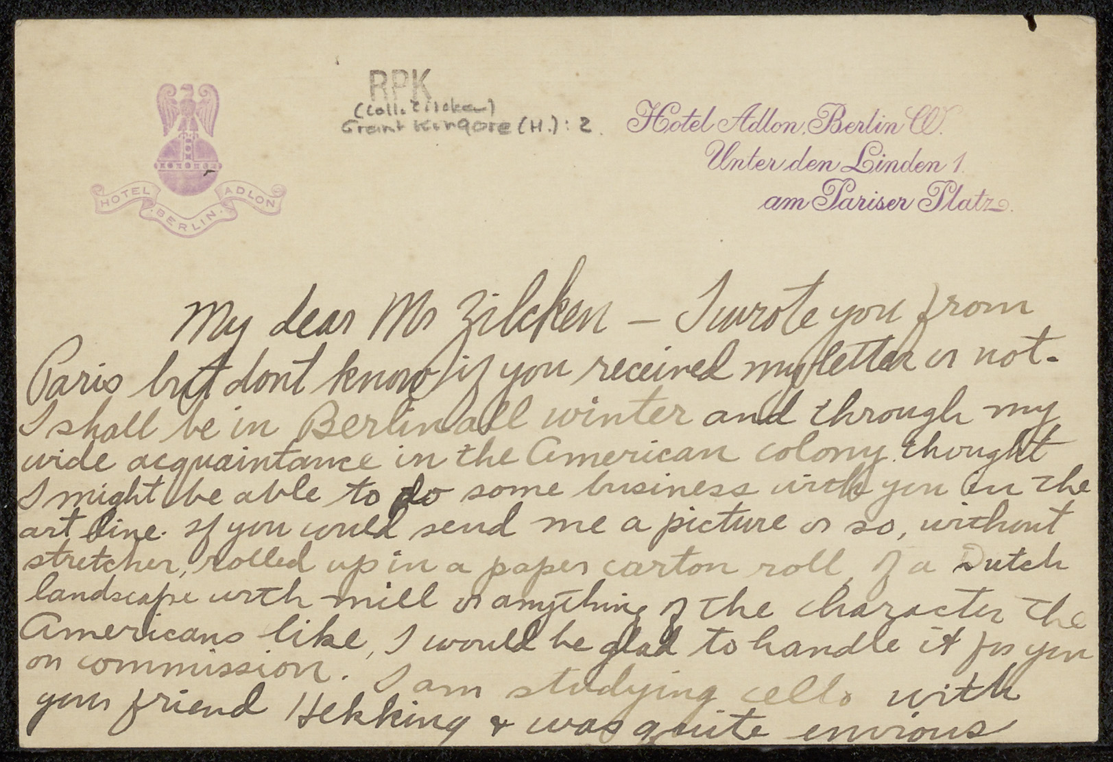 Brief aan Philip Zilcken