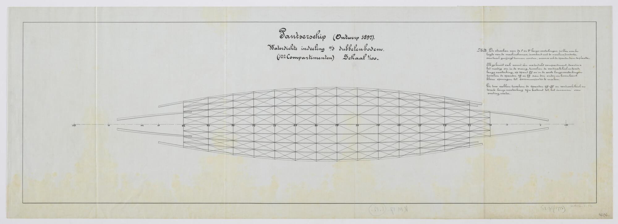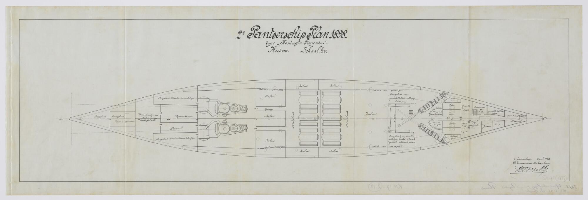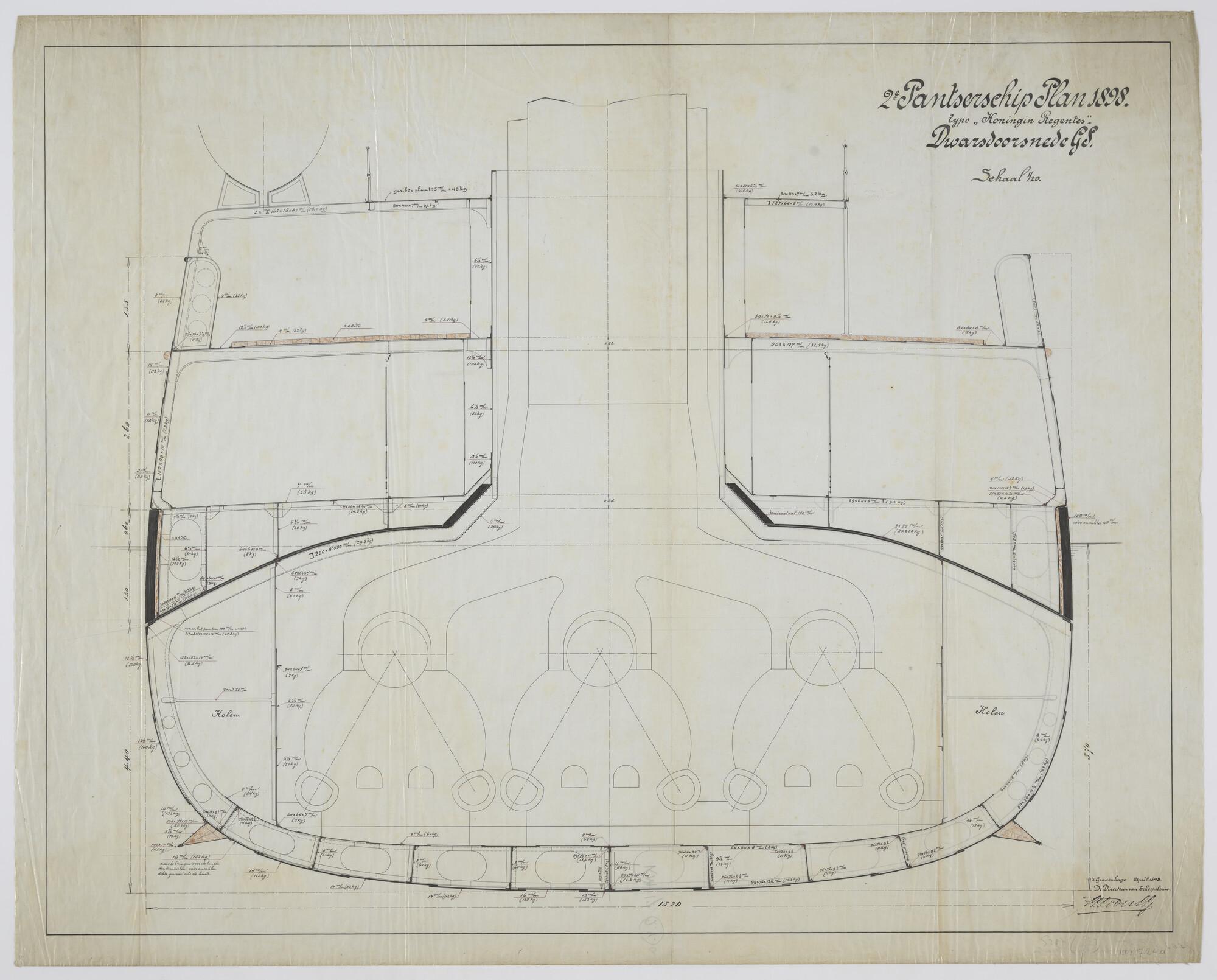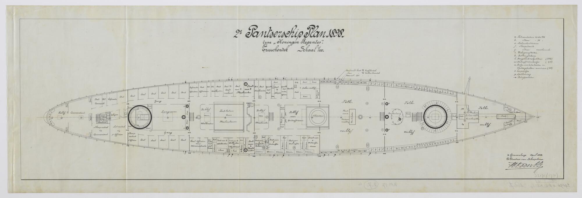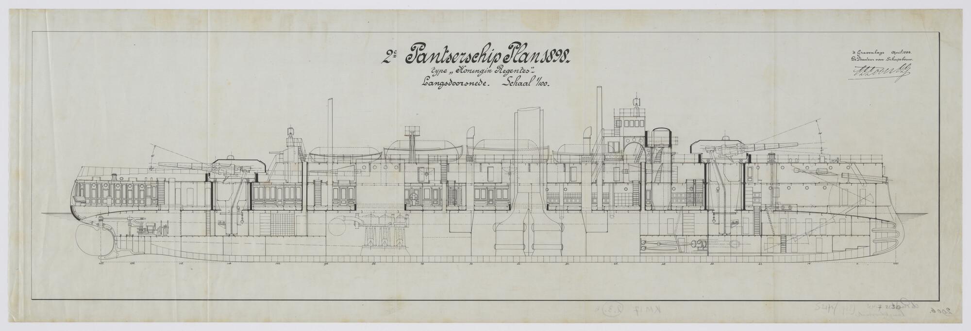 Langsdoorsnede van het 2de pantserschip plan 1898 ty...