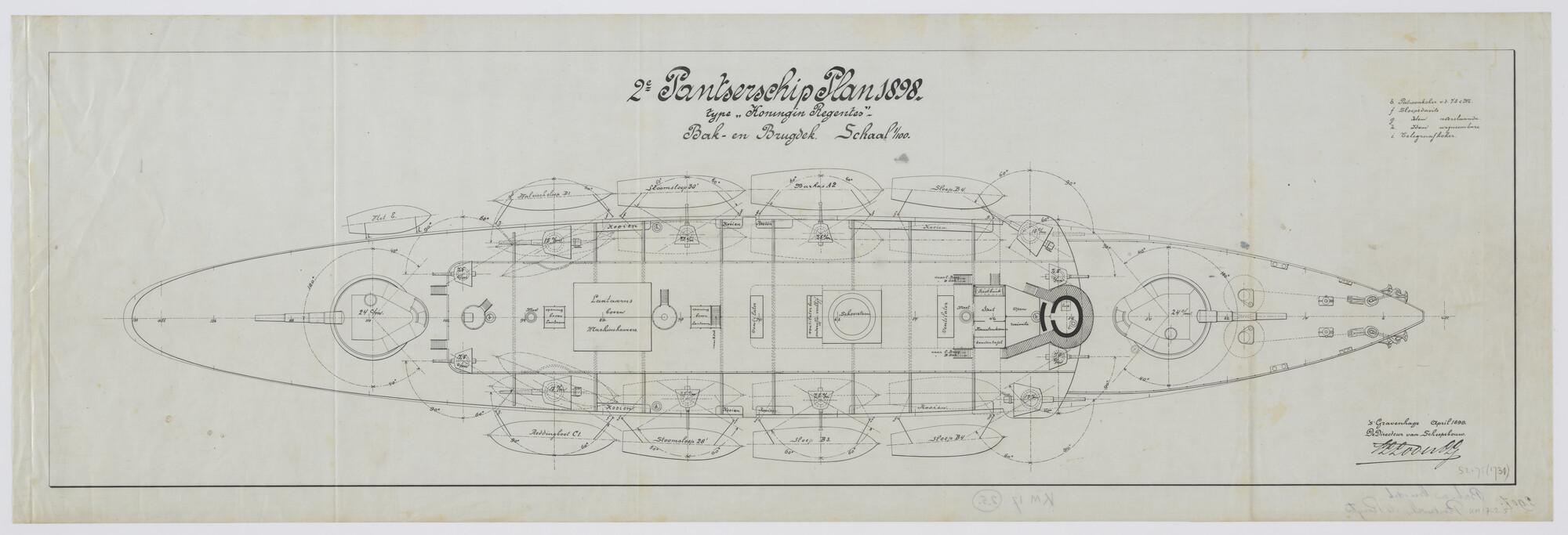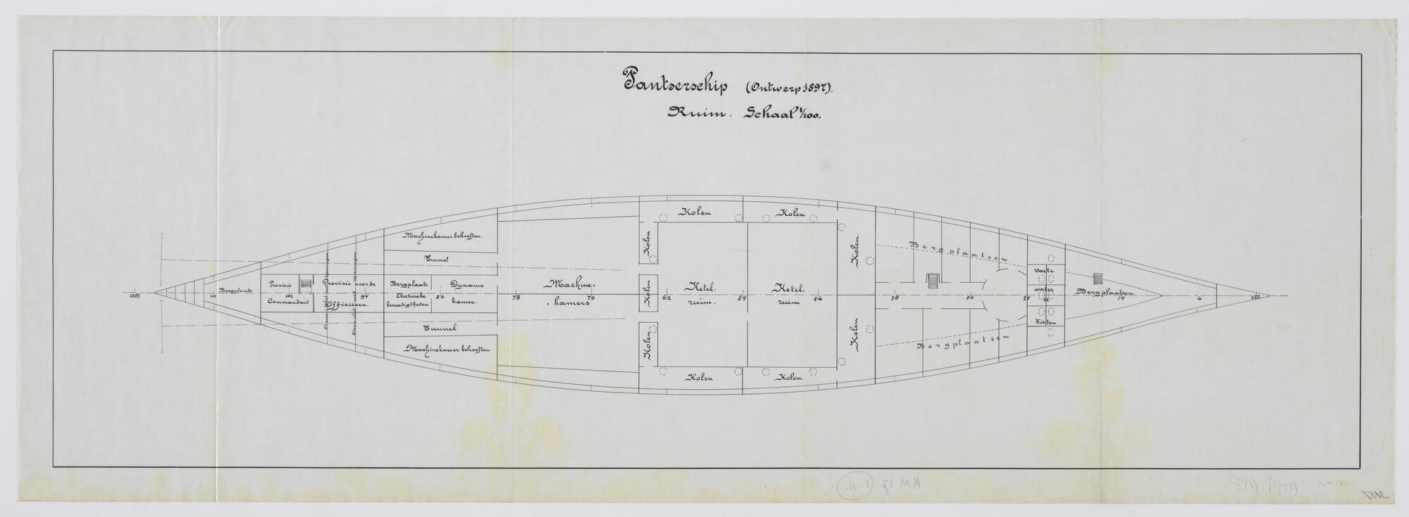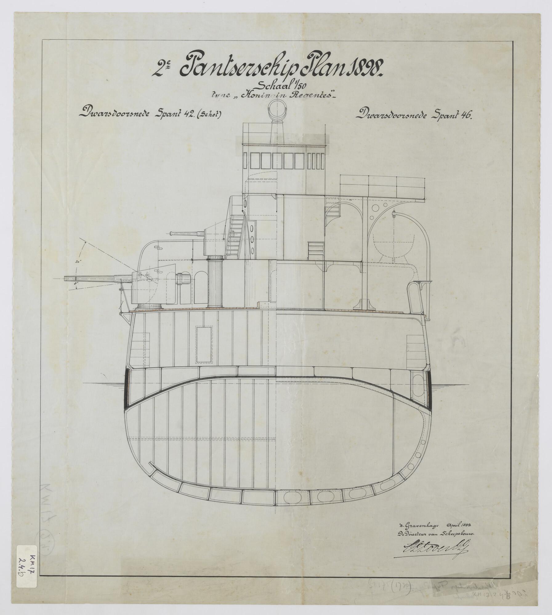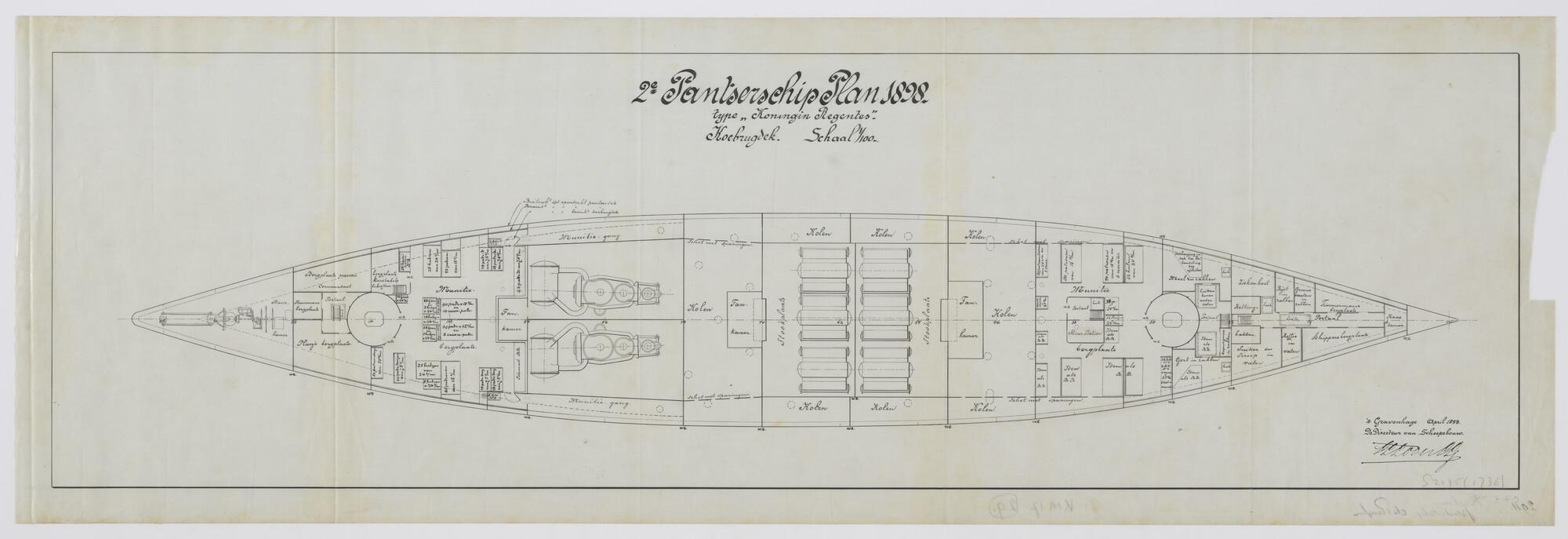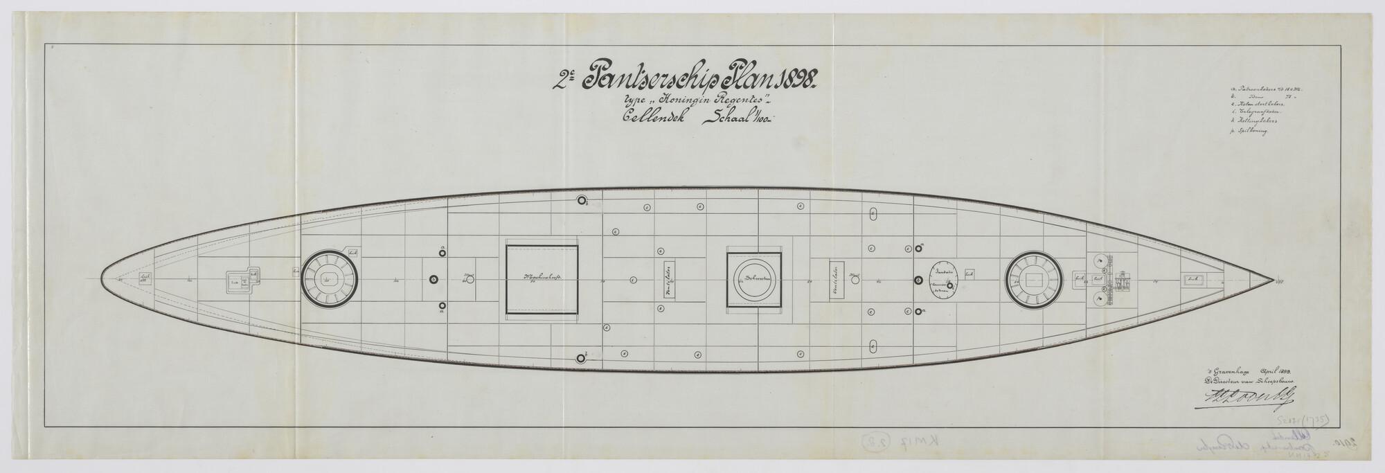Langsdoorsnede van het 2de pantserschip plan 1898 ty...