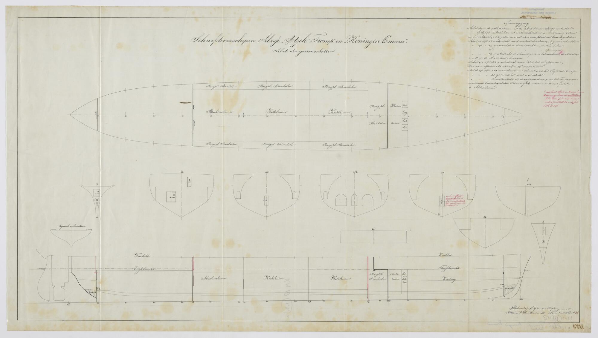 Lijnenplan en spantenraam van het 2de pantserschip p...
