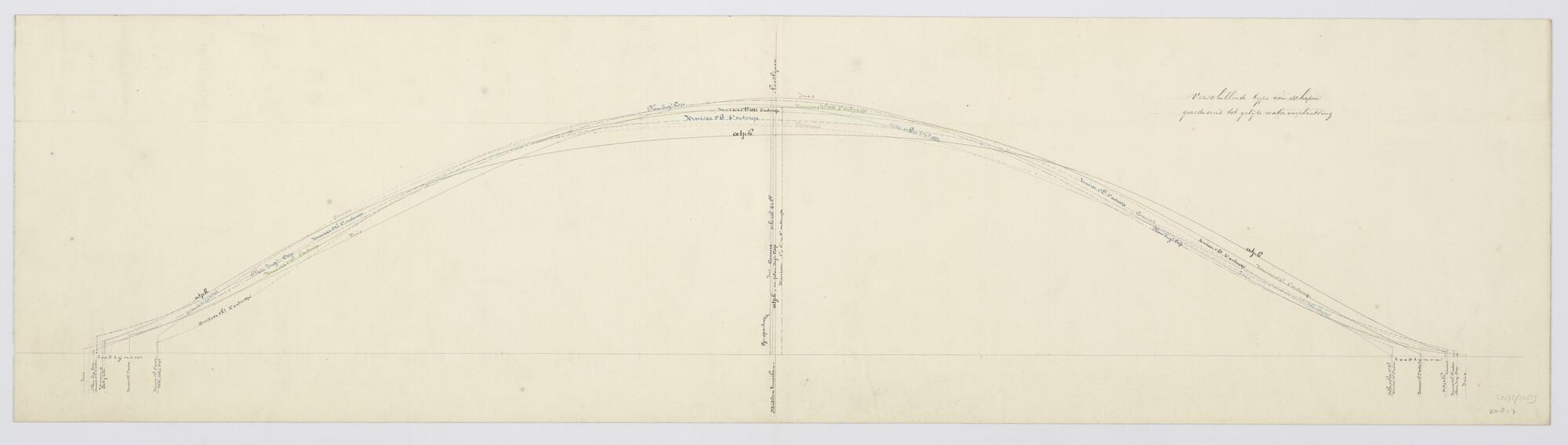 Lijnentekening en spantenraam van een ontwerp voor e...