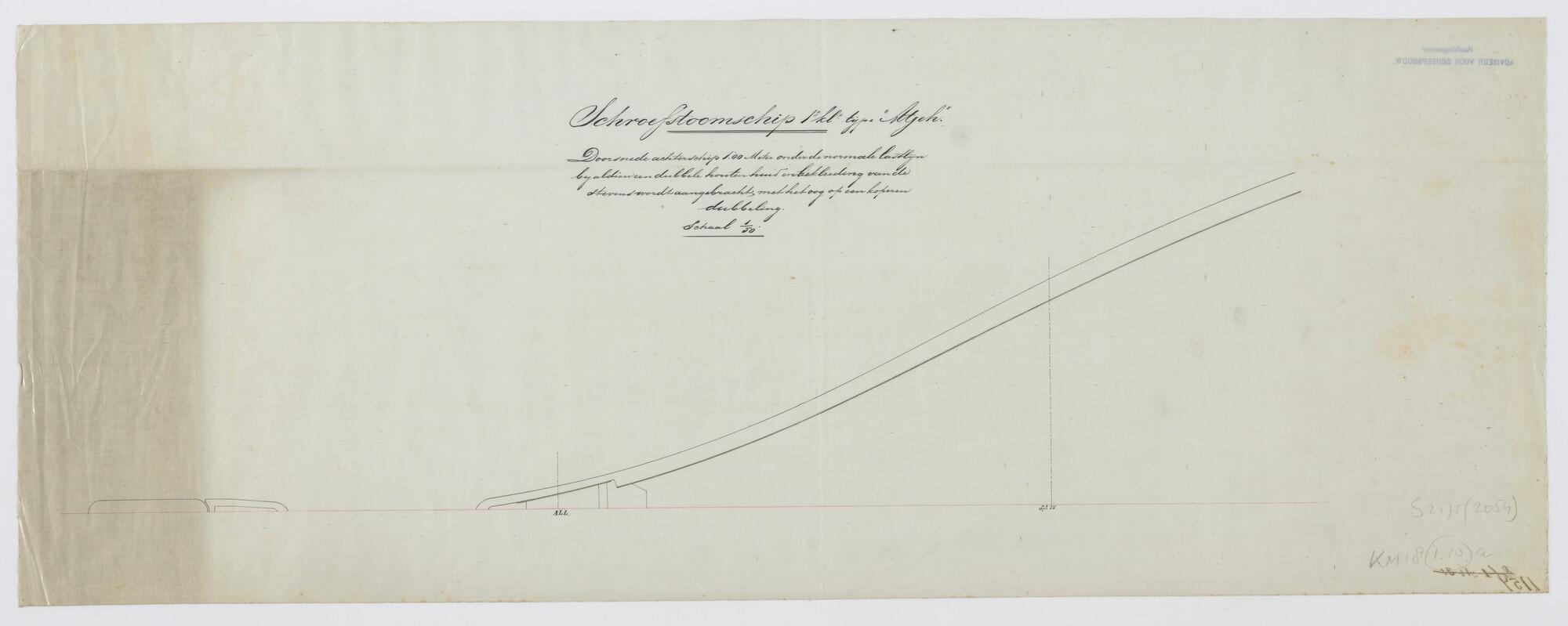 Dwarsdoorsnede van het achterschip 1 meter onder de ...
