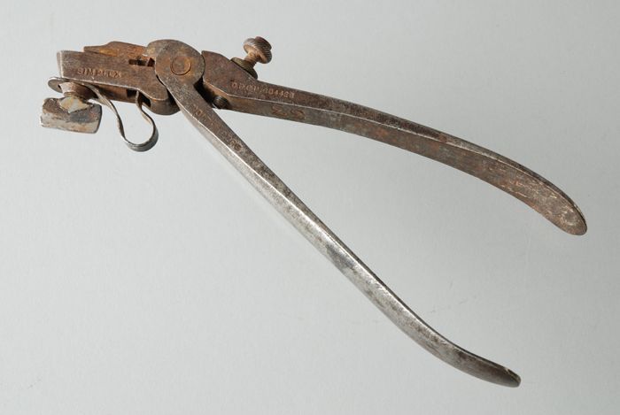 Stempelijzer met smal vlak met letters "DUBBELE : NE...
