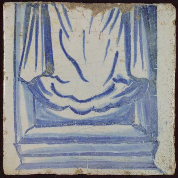 Losse tegel uit pilaster met decor in blauw, gelaat ...