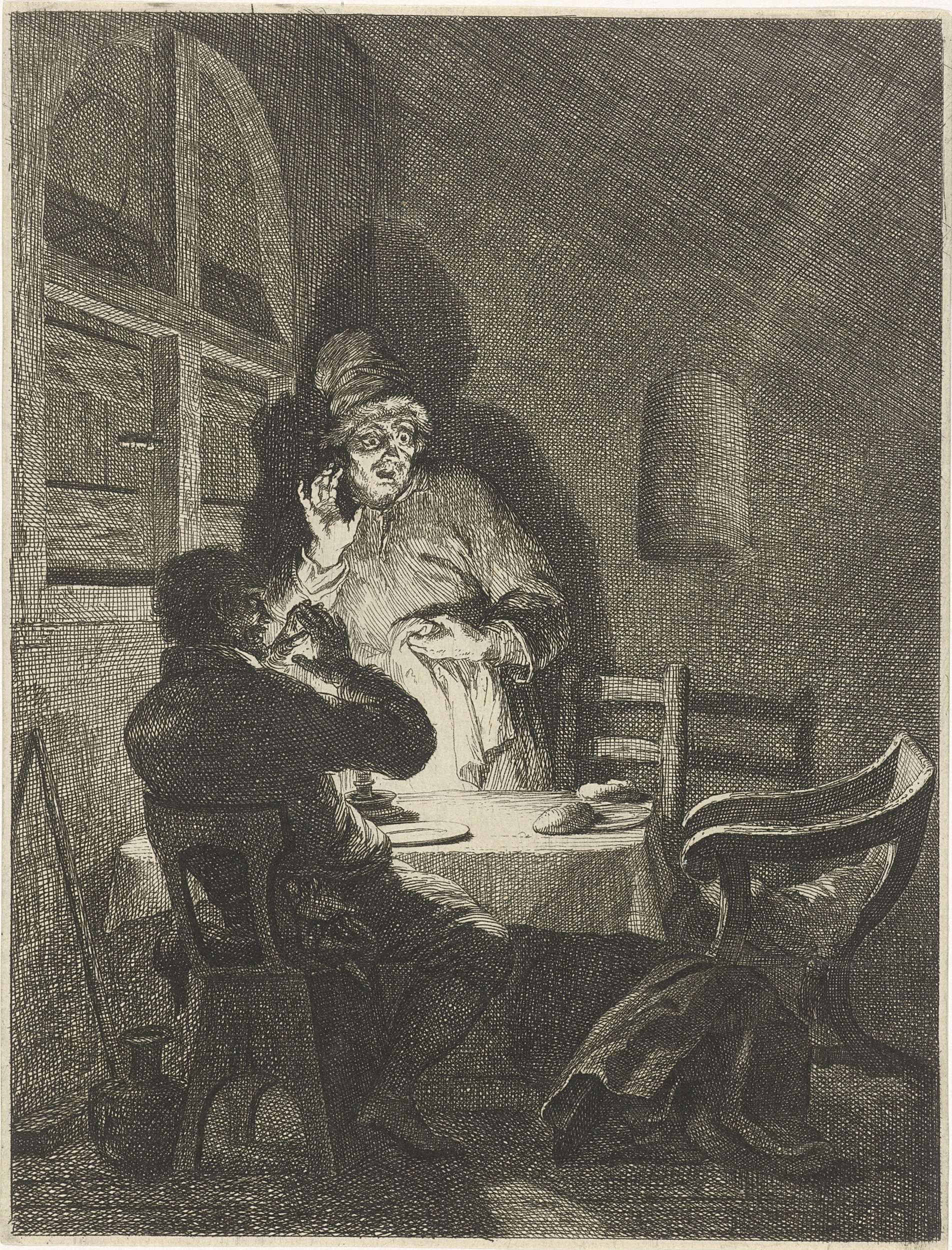 Vier boeren in een interieur
