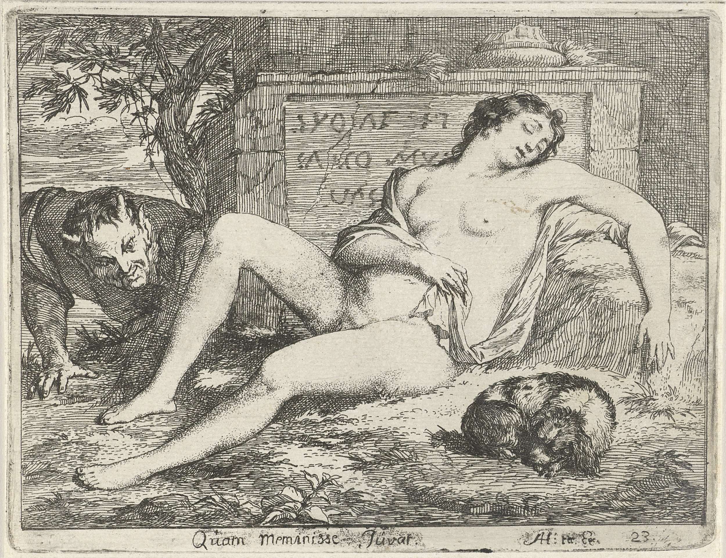 Slapende nimf begluurd door een sater