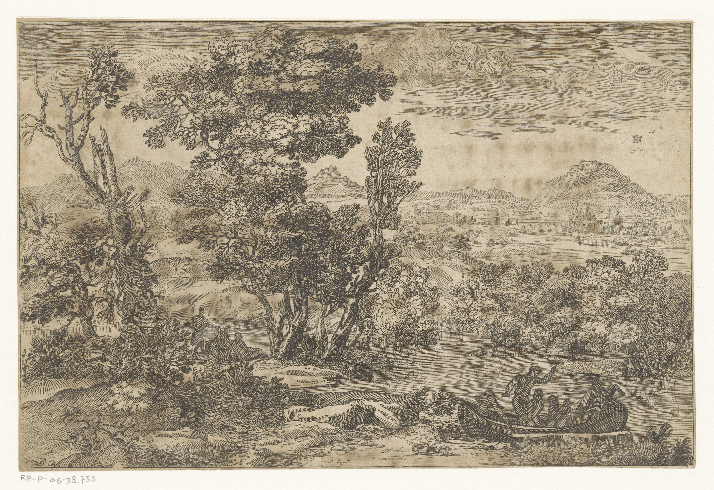 Landschap met een boot op een rivier