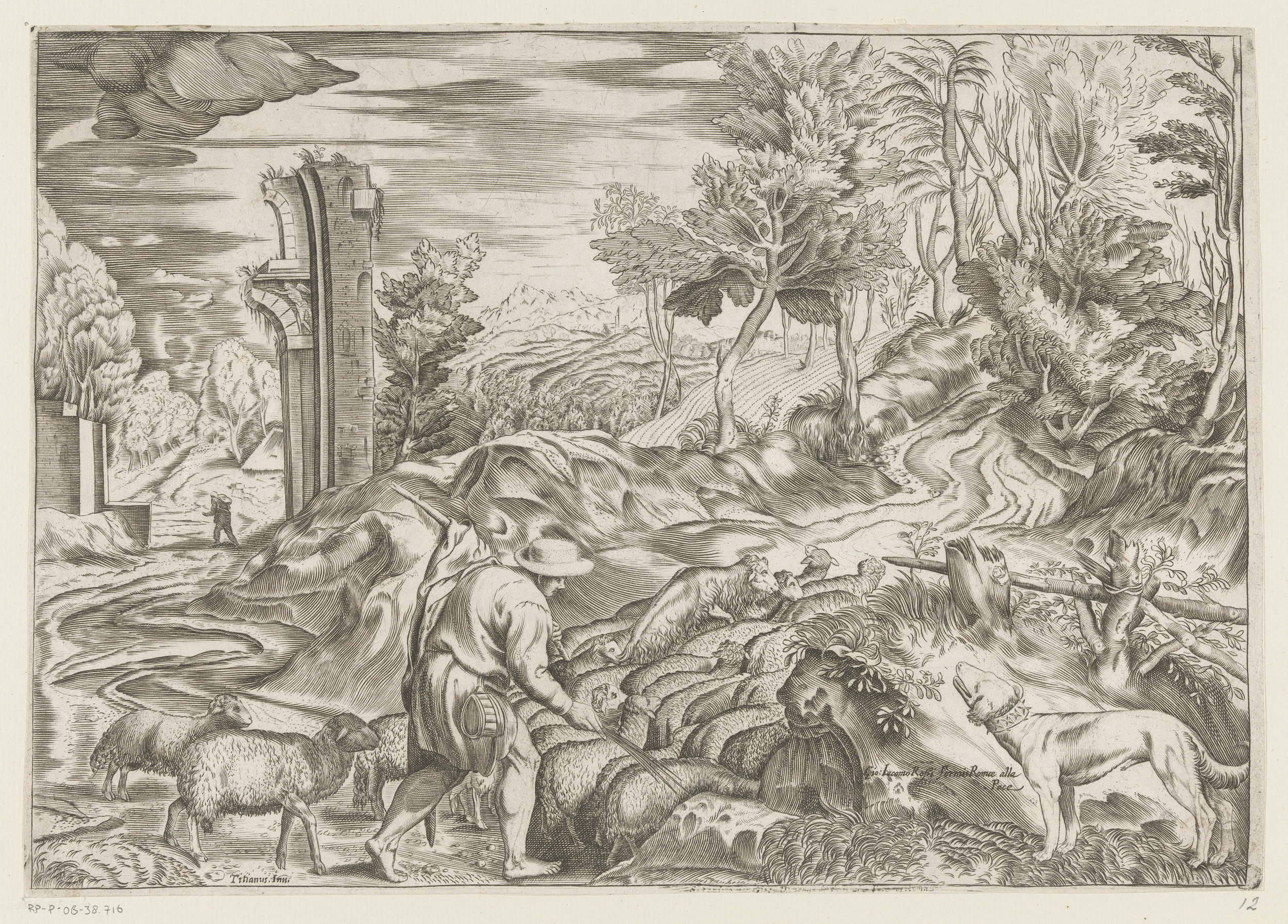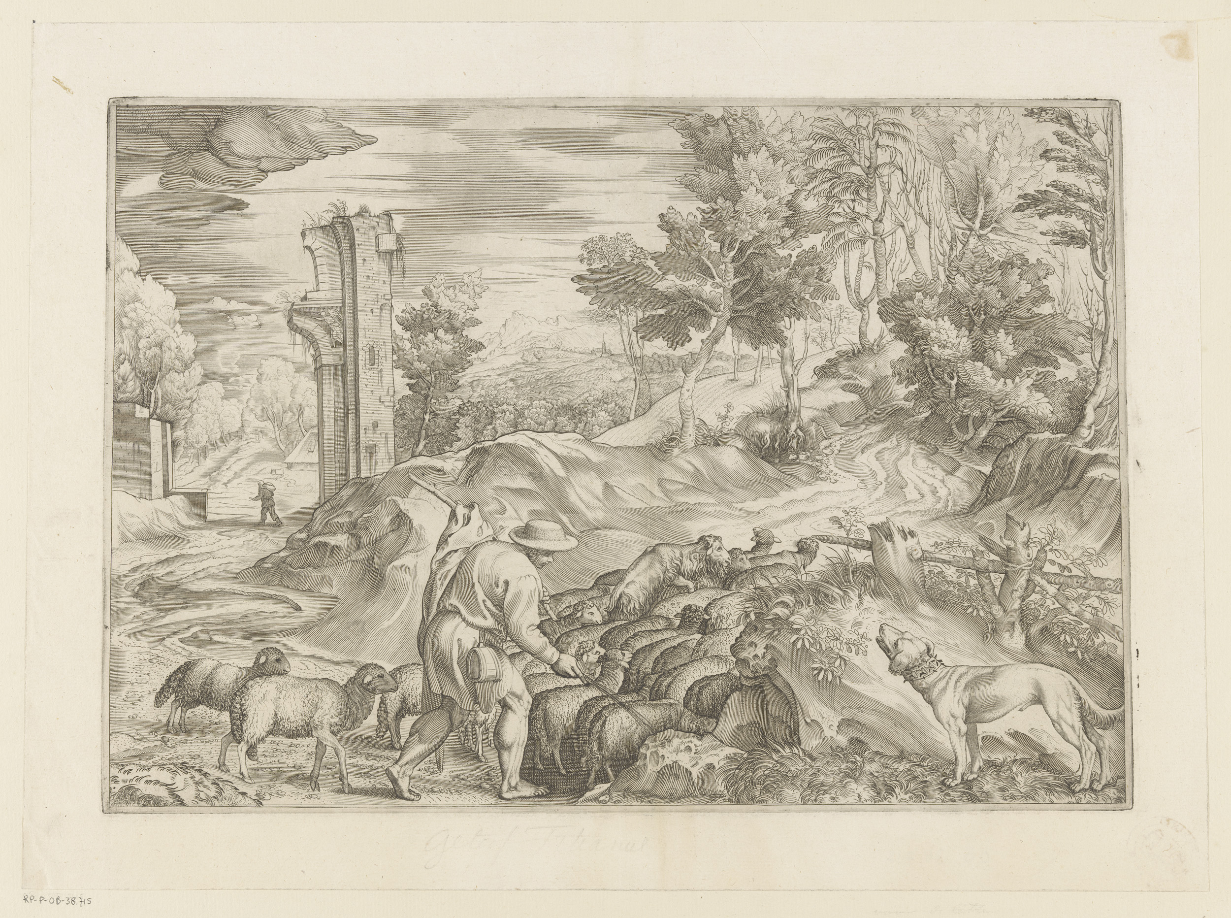 Herder met kudde schapen