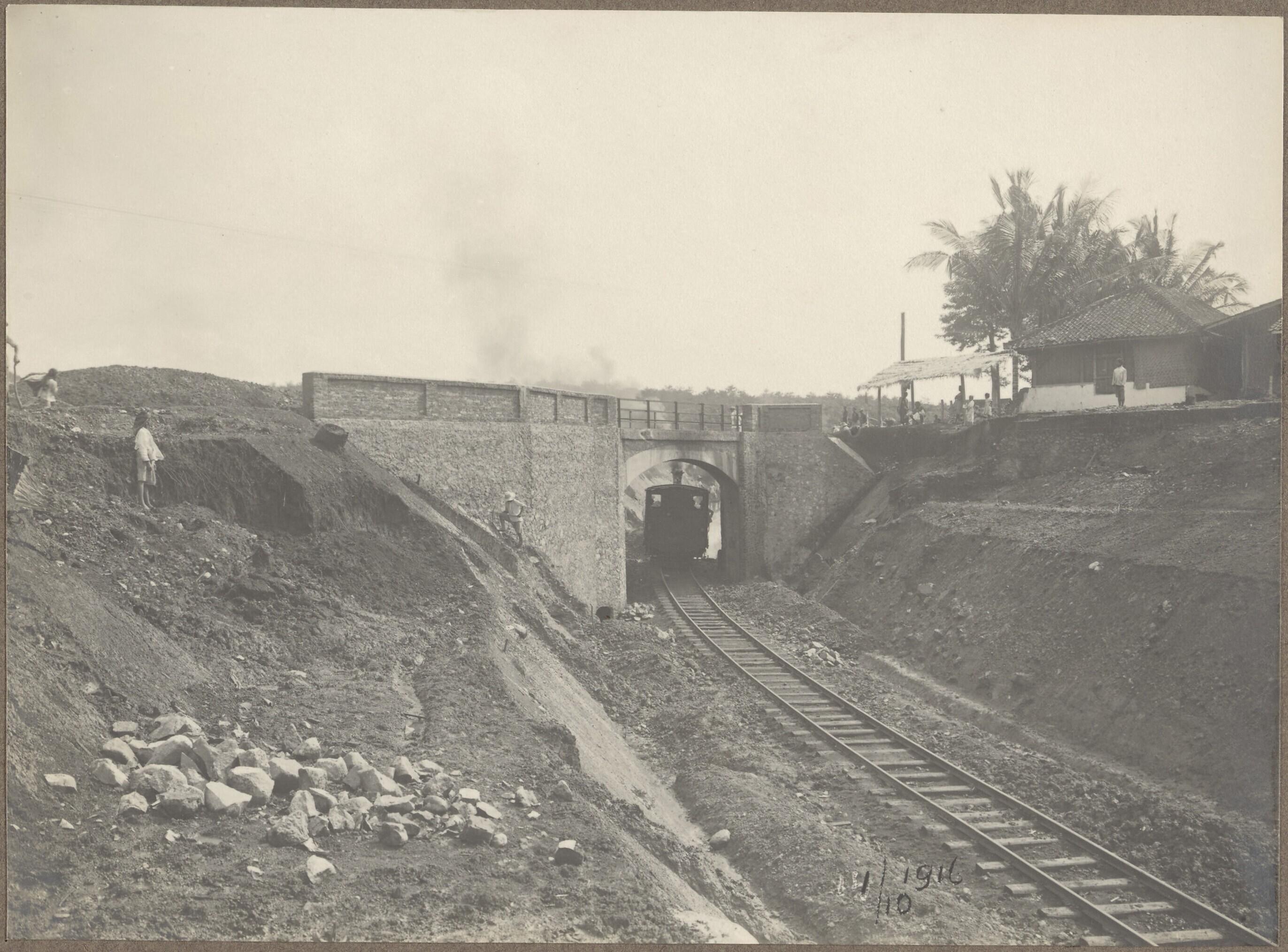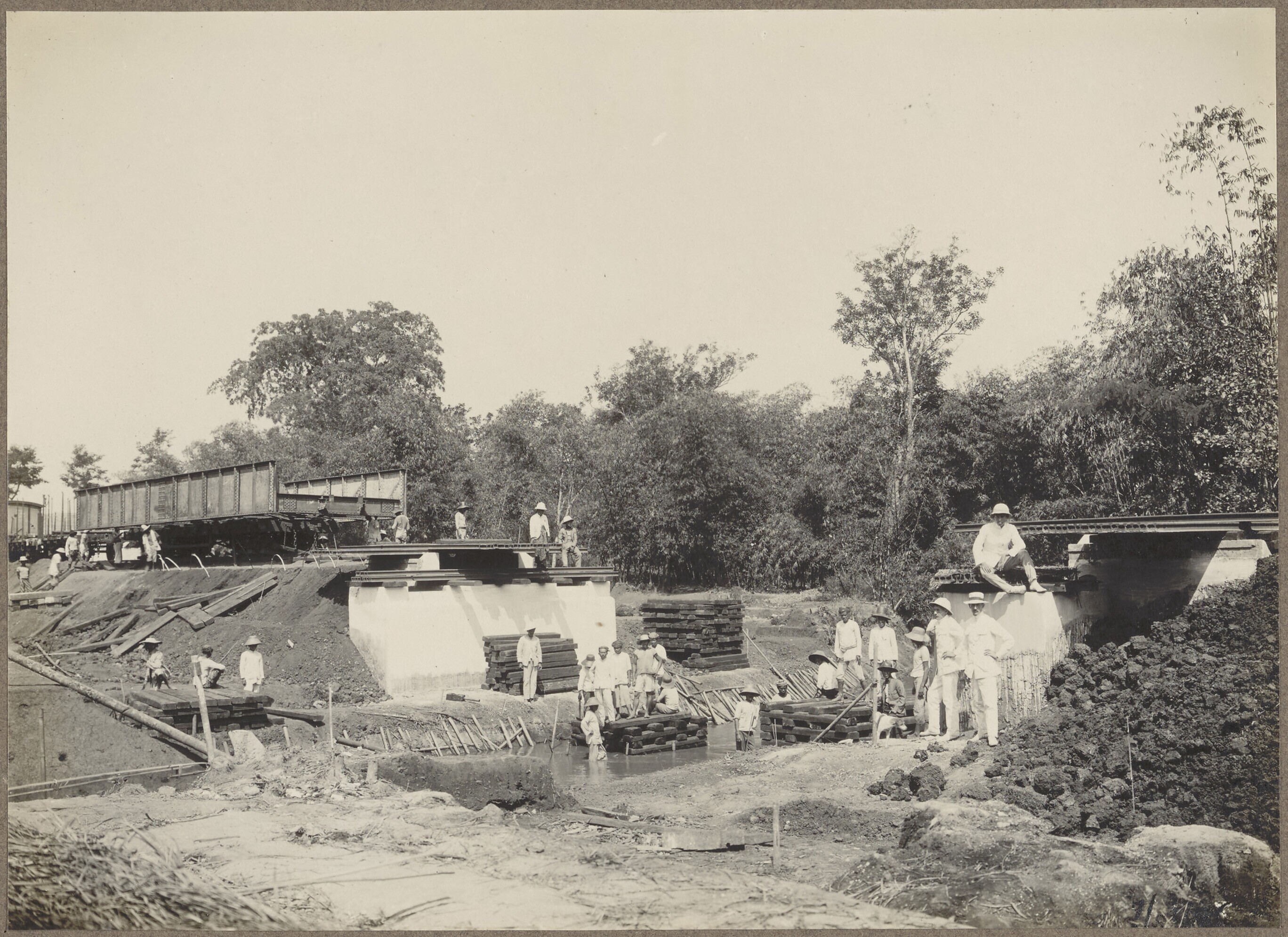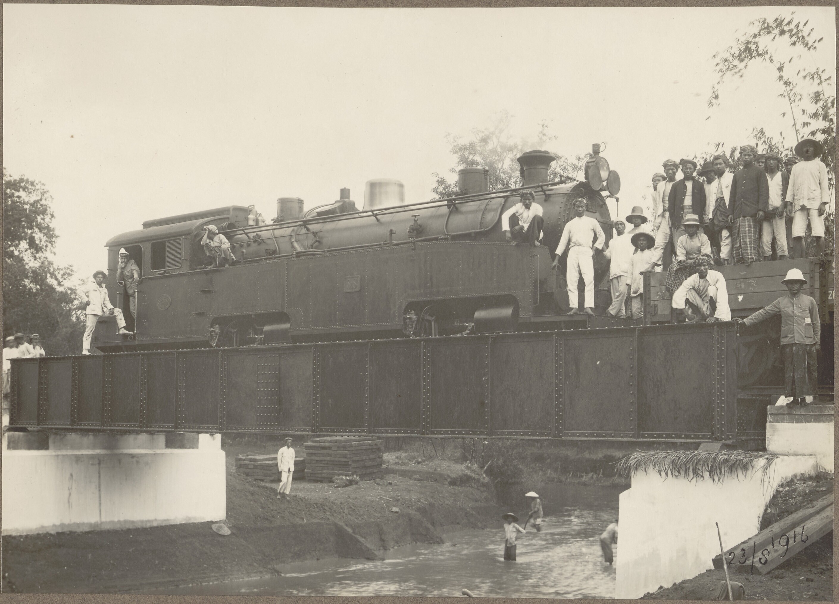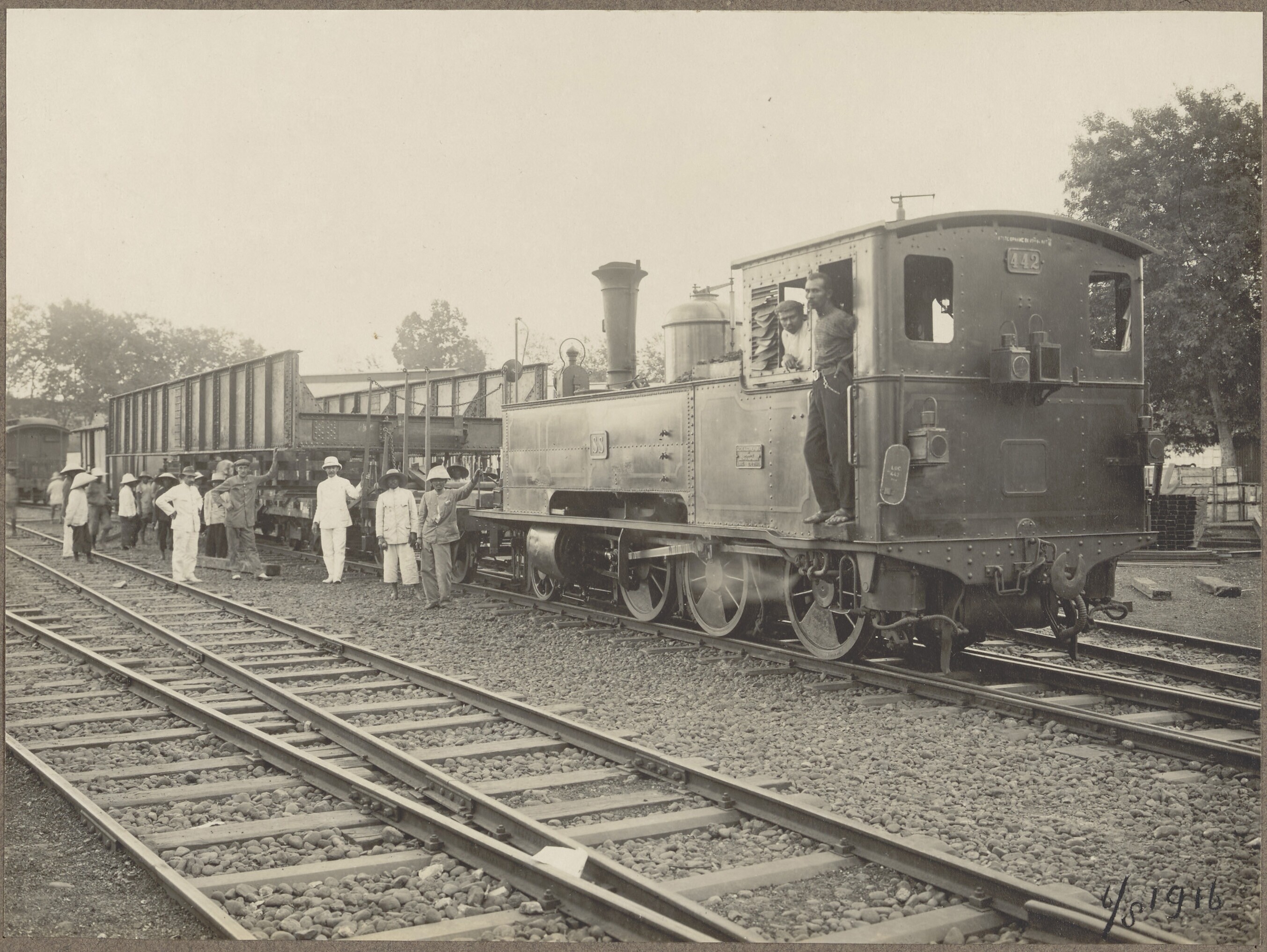 Transport per stoomlocomotief van een in Bandoeng ge...