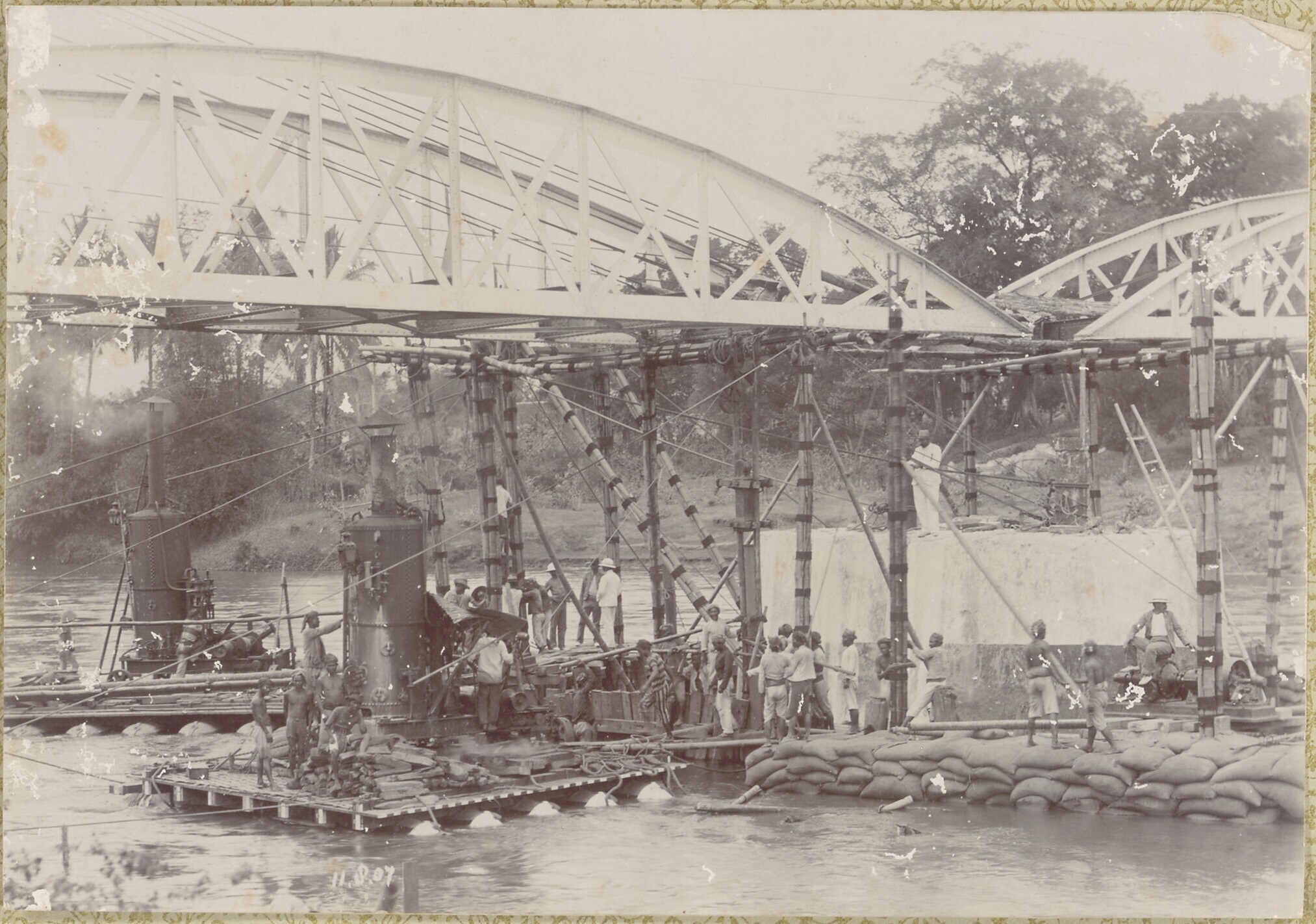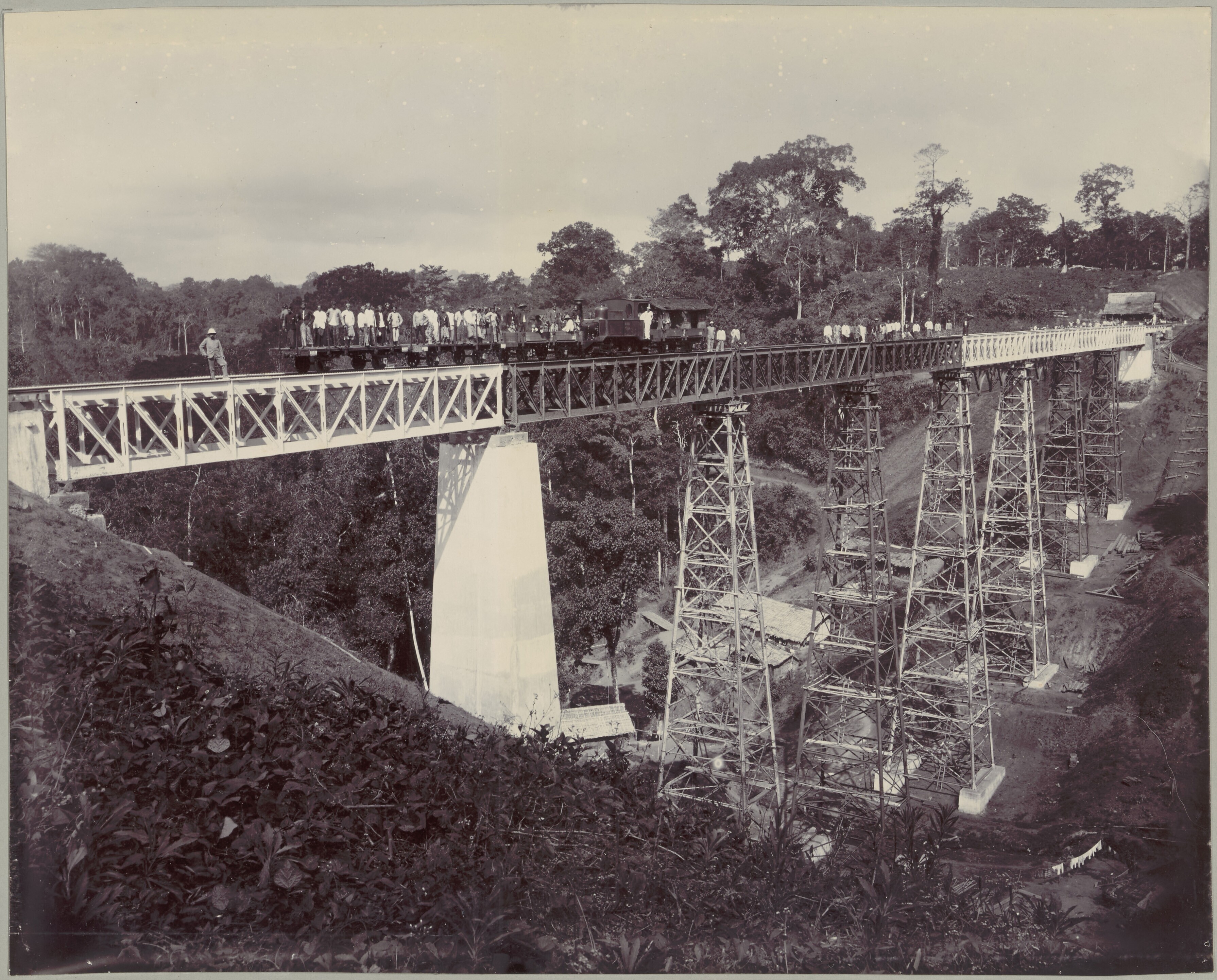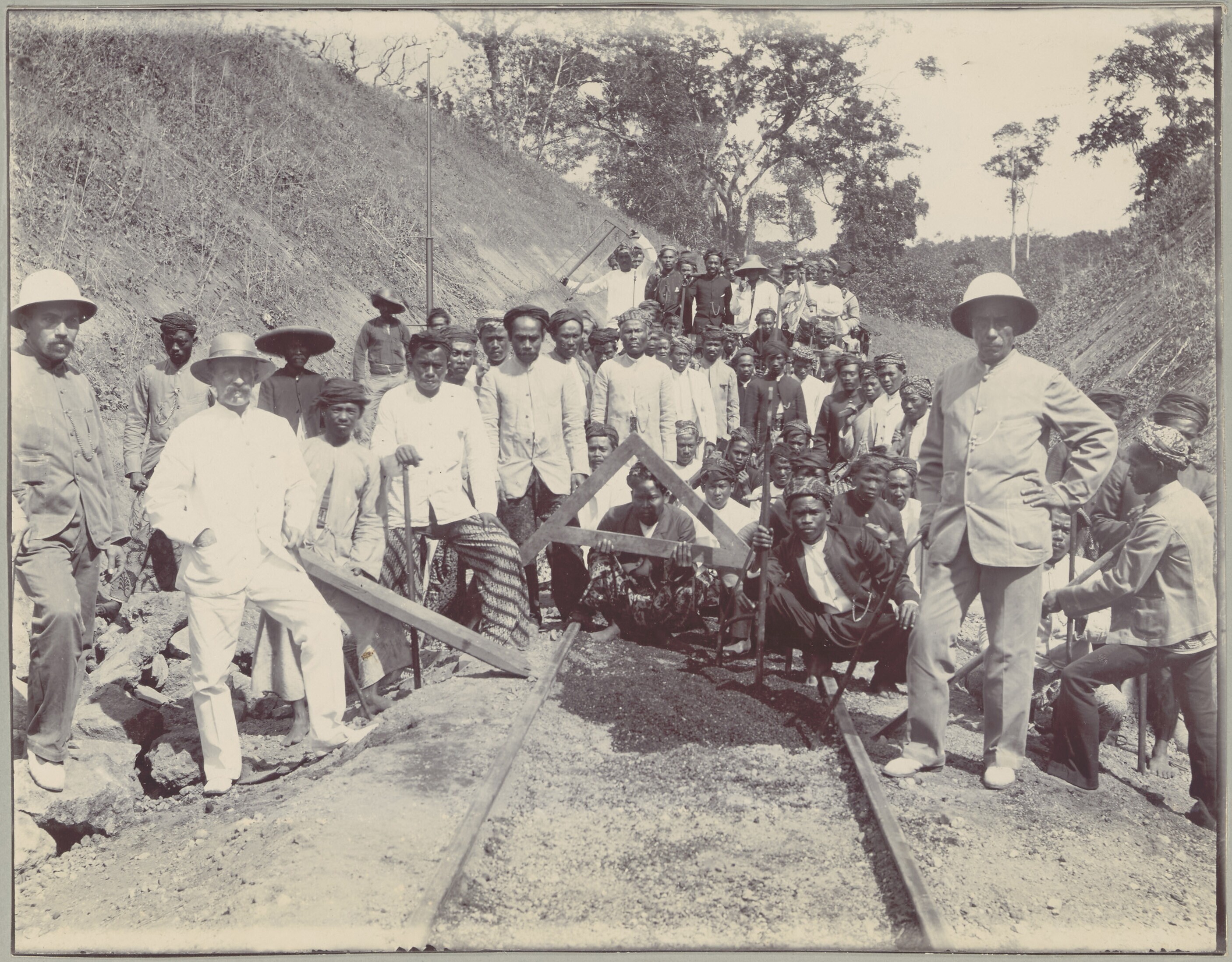 Transport per stoomlocomotief van een in Bandoeng ge...