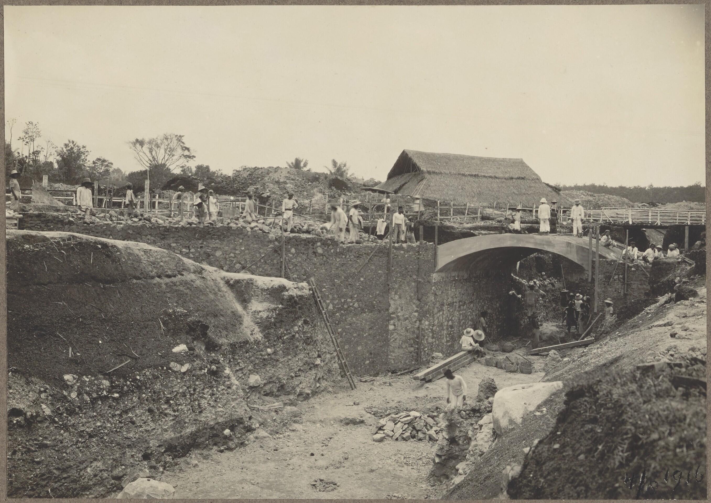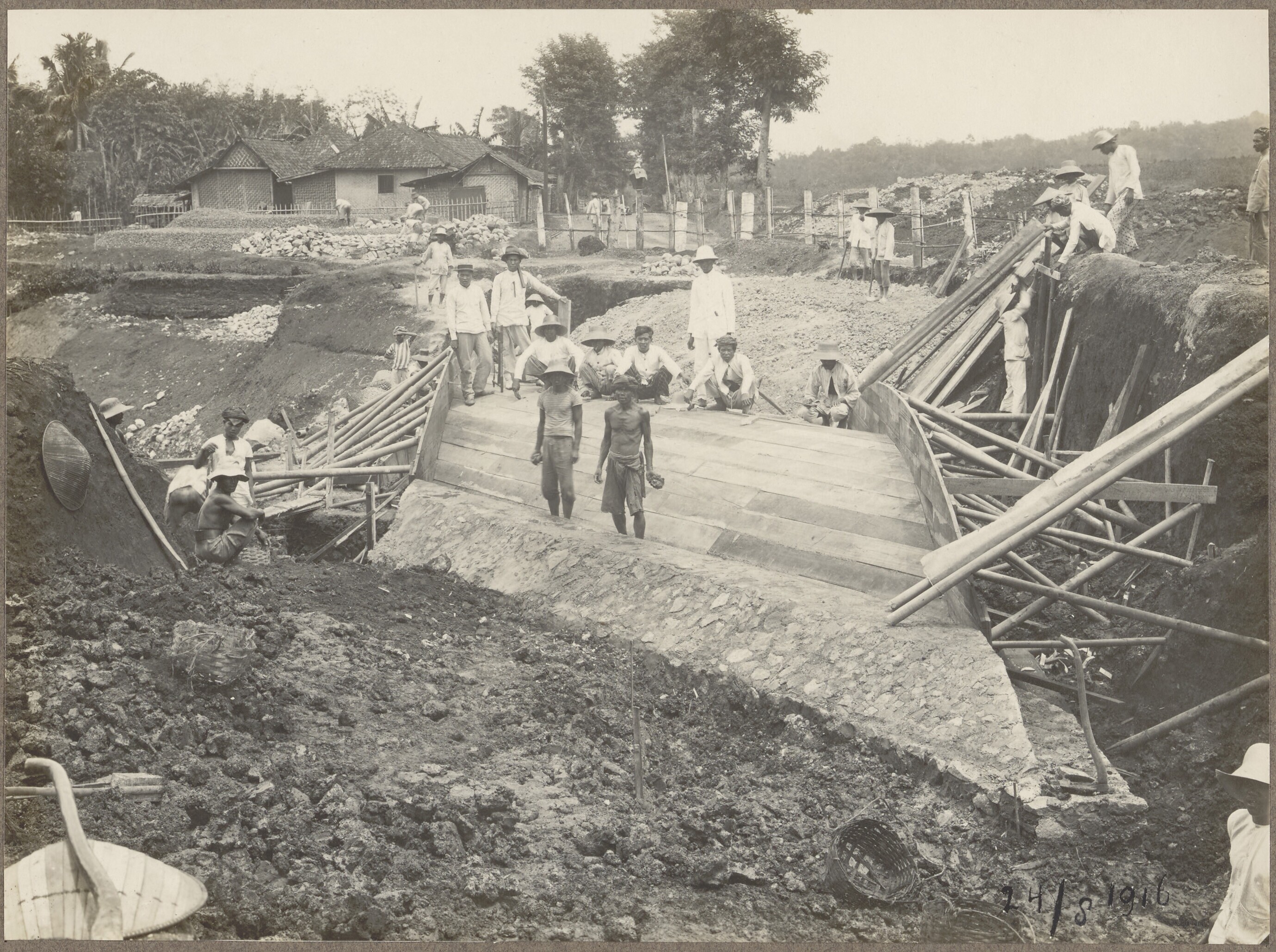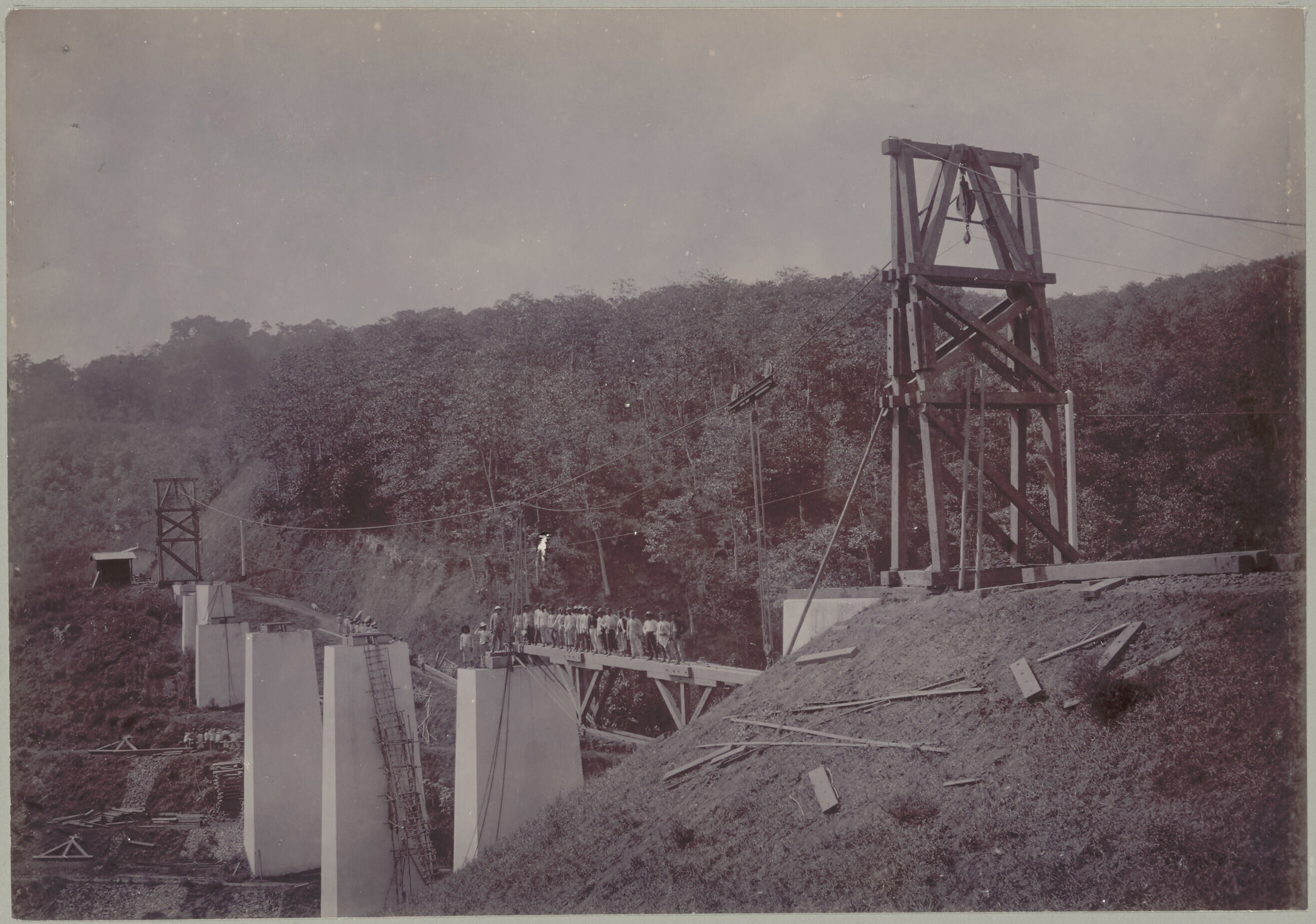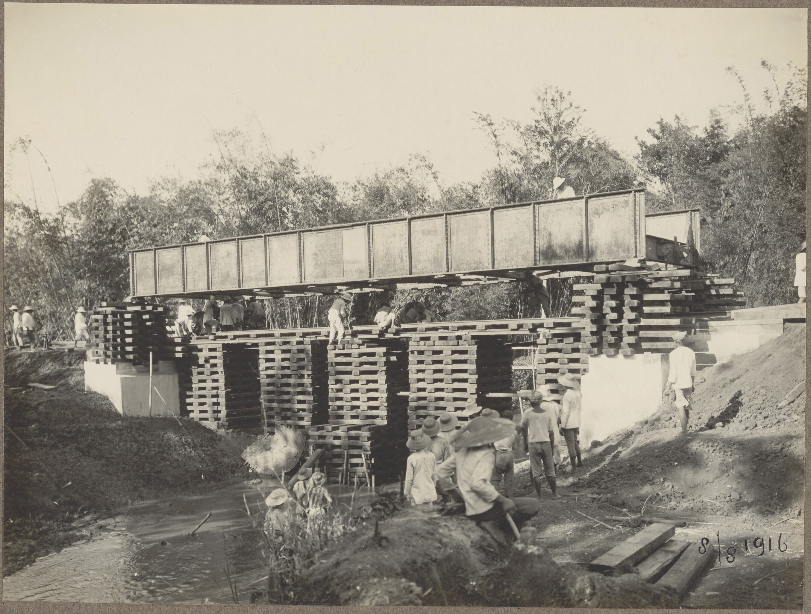 Transport per stoomlocomotief van een in Bandoeng ge...