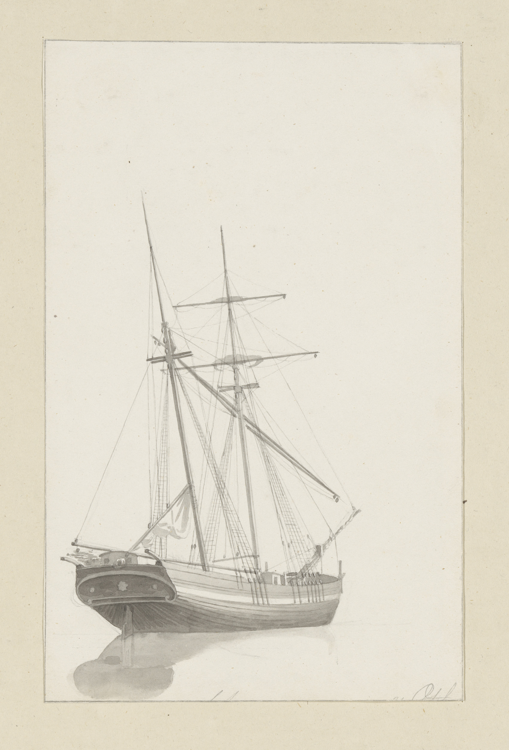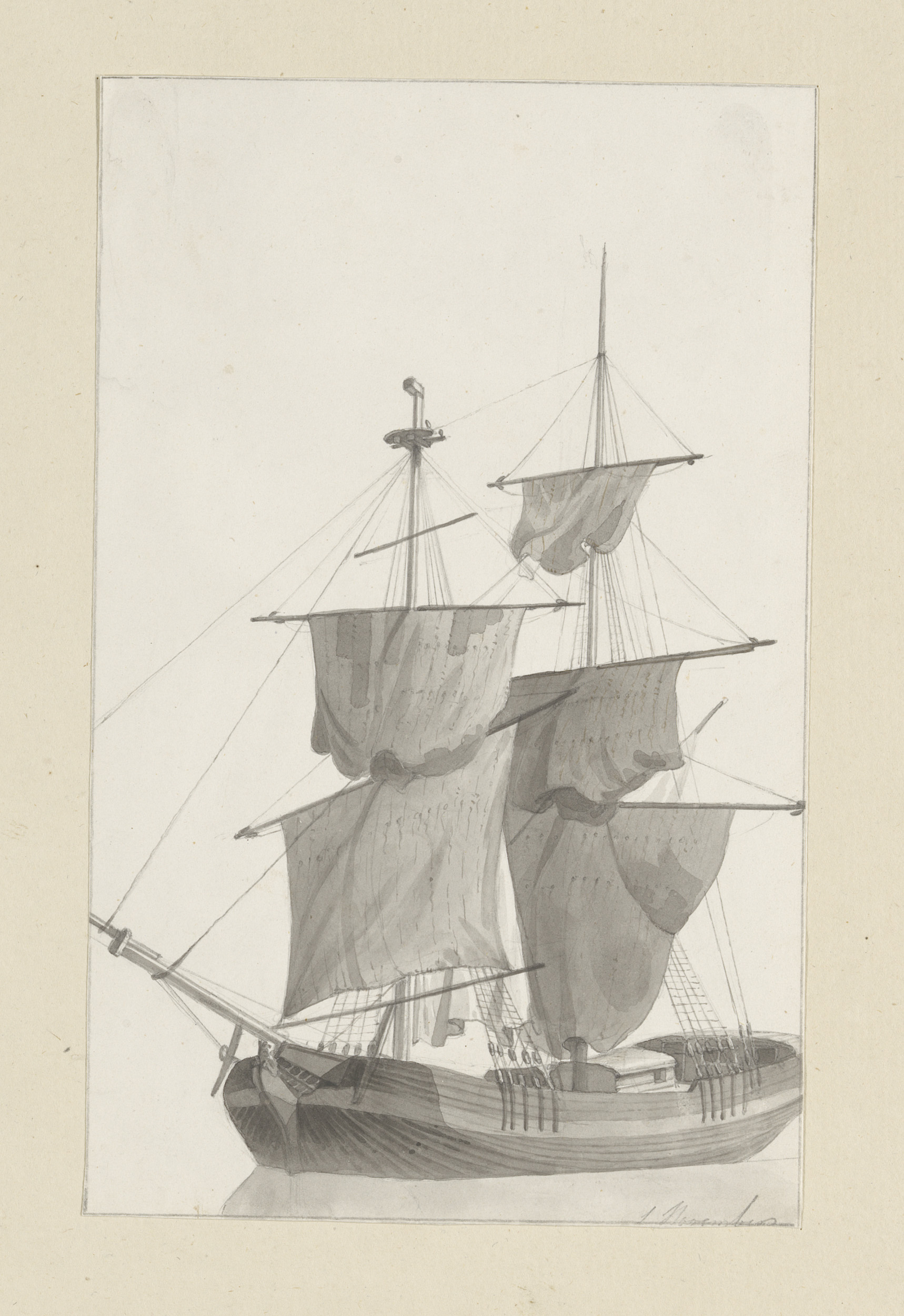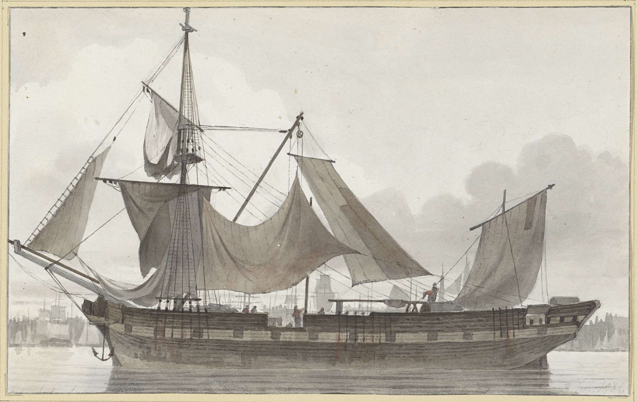 Driemaster onder noodtuig, een haven binnenlopend me...